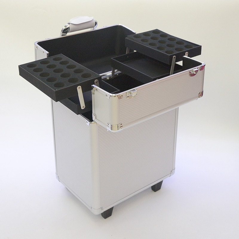 本店产品规格均为手工测量,会有一公分的误差哦!优质铝材拉杆化妆箱,便携式大容量万向轮美容美发工具箱!