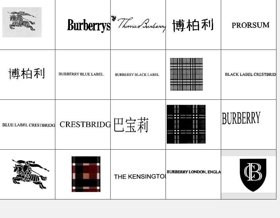 以下图形为Burberry常用商标图形,均已在中国商标局注册,勃贝雷有限公司获得商标专用权。他人未经许可在服装类产品中使用与其相同或近似图形易构成侵权,需承担法律责任。希望各位市场经营户注意识别!