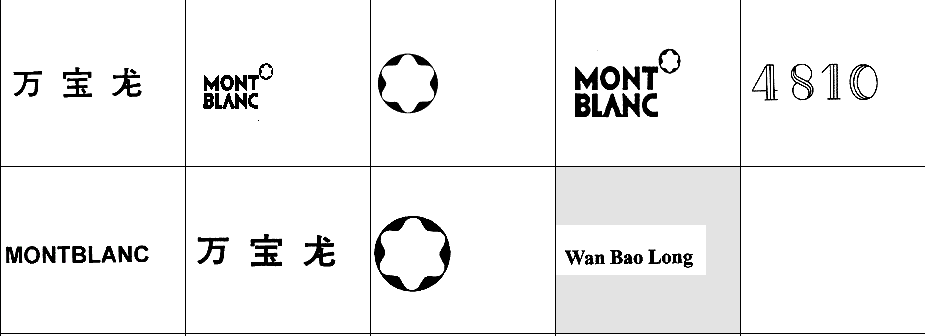 以下图形为万宝龙常用商标图形,均已在中国商标局注册,蒙特布兰-辛普洛公司获得商标专用权。他人未经许可在服装类产品中使用与其相同或近似图形易构成侵权,需承担法律责任。希望各位市场经营户注意识别!