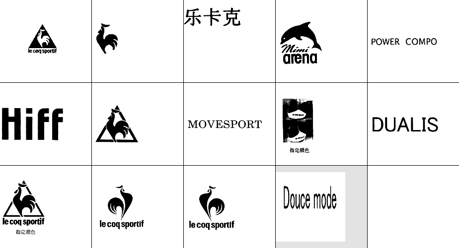 以下图形为法国公鸡(Le Coq Sportif)常用商标图形,均已在中国商标局注册,株式会社迪桑特获得商标专用权。他人未经许可在服装类产品中使用与其相同或近似图形易构成侵权,需承担法律责任。希望各位市场经营户注意识别!