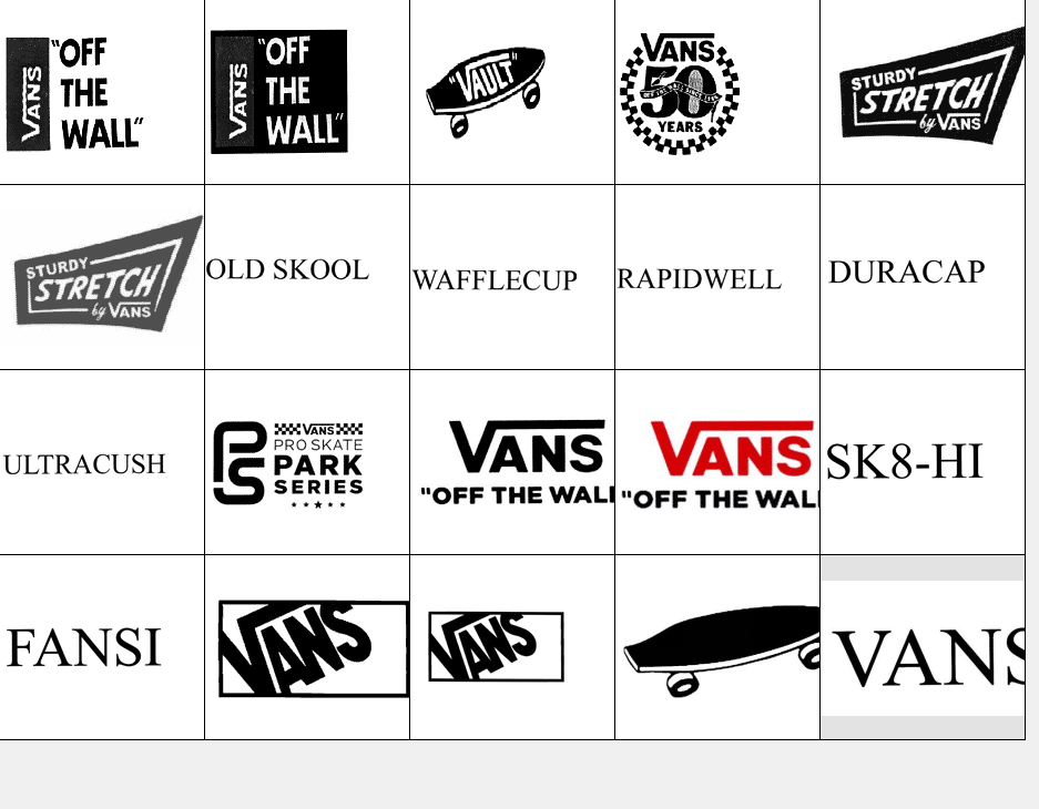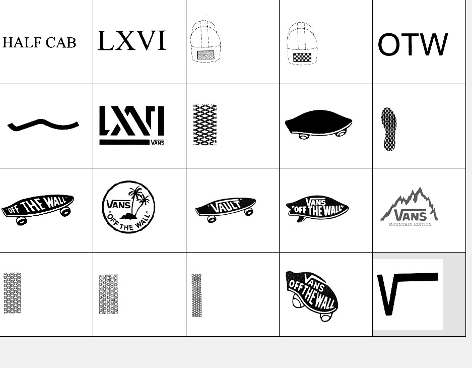以下图形为Vans(范斯)常用商标图形,均已在中国商标局注册,范斯公司获得商标专用权。他人未经许可在服装类产品中使用与其相同或近似图形易构成侵权,需承担法律责任。希望各位市场经营户注意识别!
