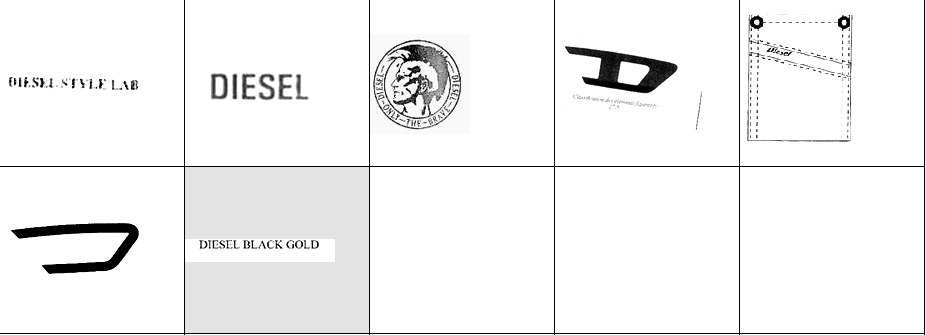 以下图形为Diesel常用商标图形,均已在中国商标局注册,DIESEL S.P.A.获得商标专用权。他人未经许可在服装类产品中使用与其相同或近似图形易构成侵权,需承担法律责任。希望各位市场经营户注意识别!