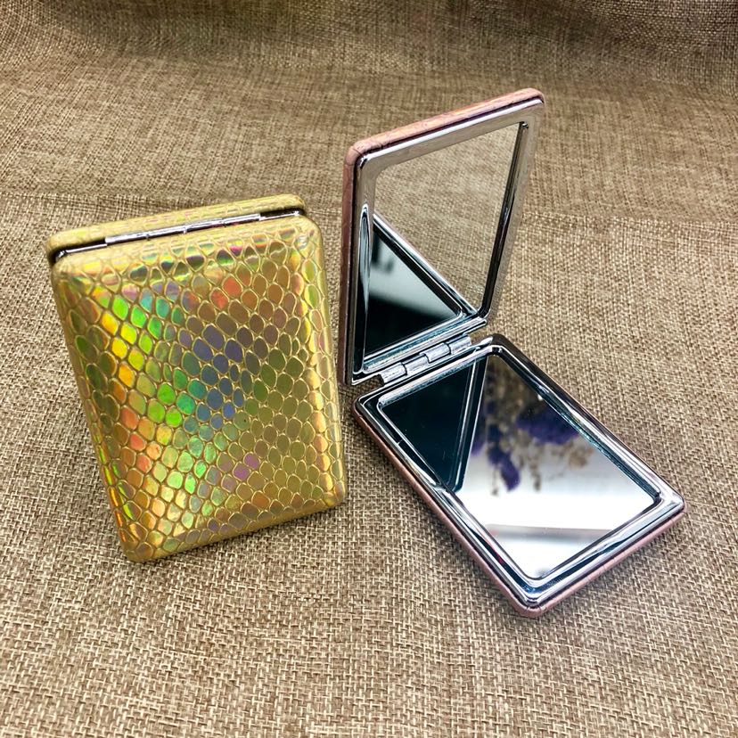 高档PU化妆镜 双面折叠小镜子 礼品镜 投诉