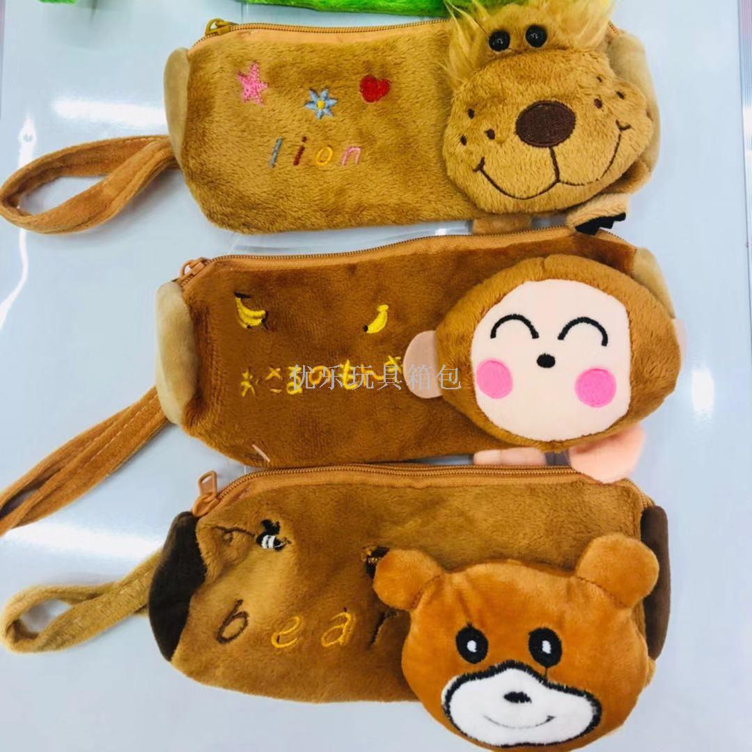 超大卡通毛绒动物头刺绣笔袋 手拿袋 投诉