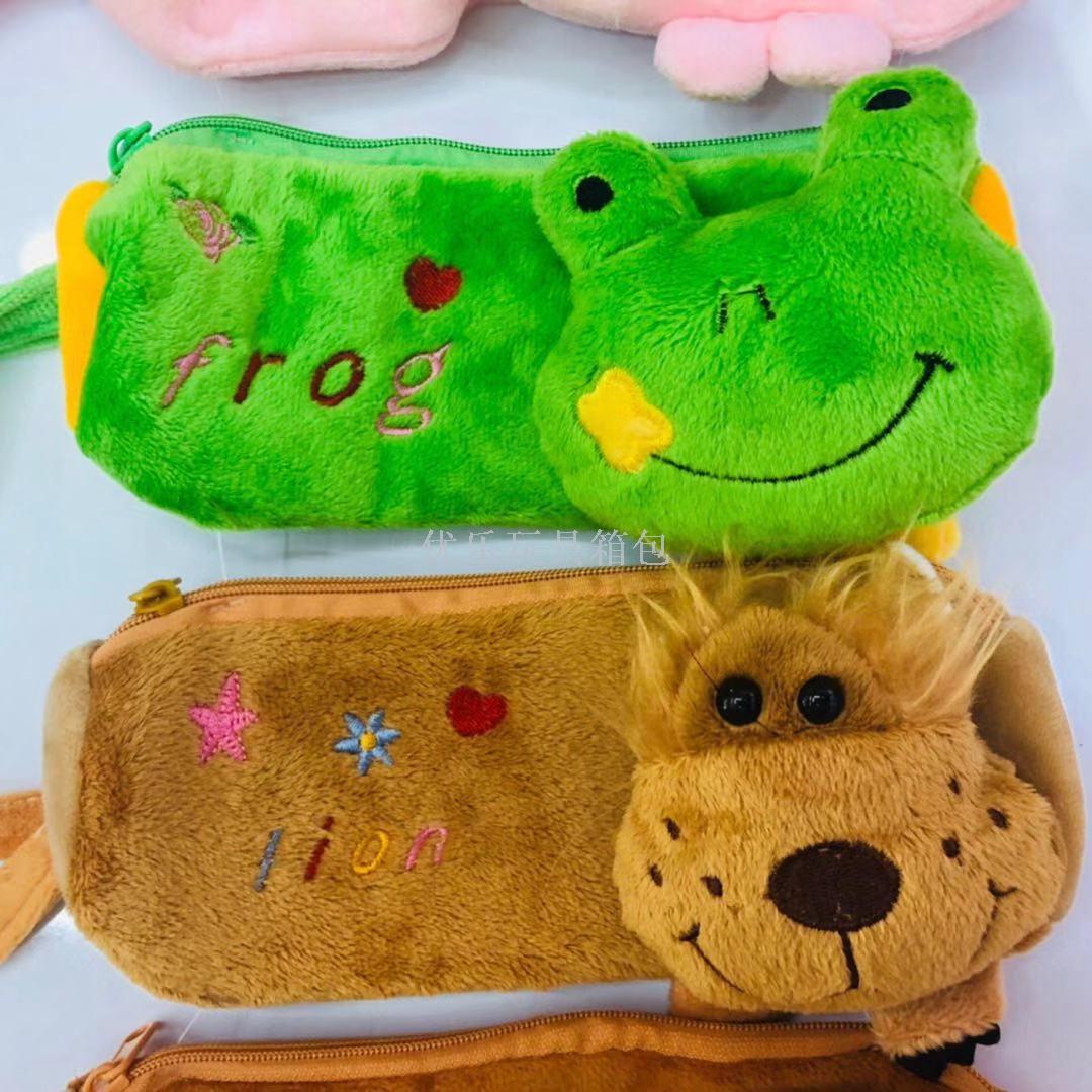 超大卡通毛绒动物头刺绣笔袋 手拿袋