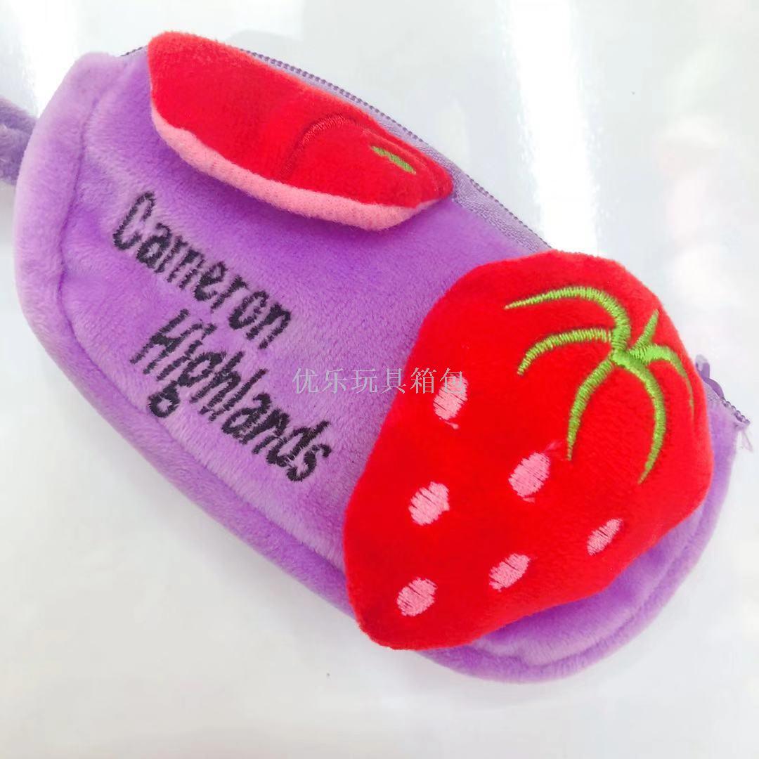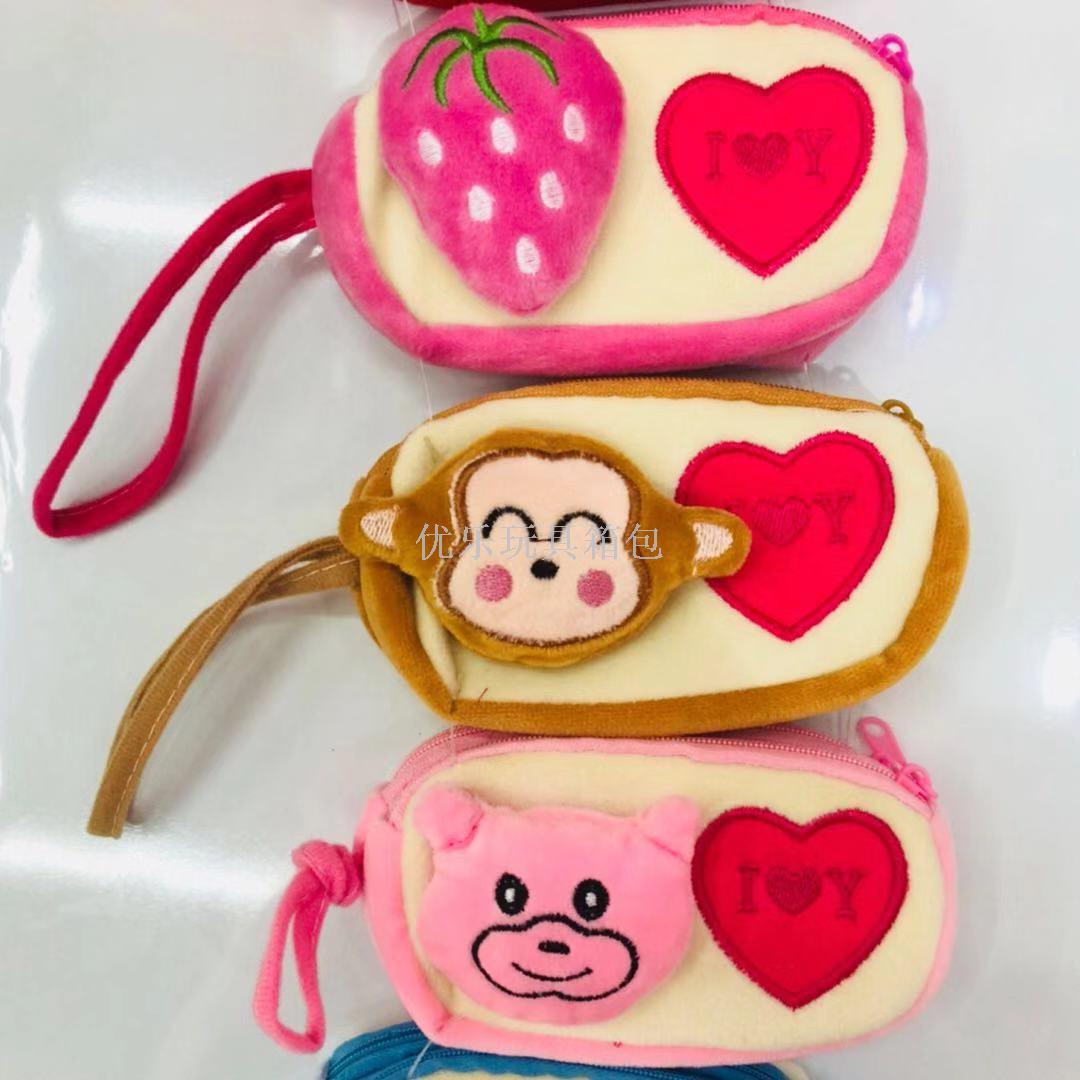 毛绒刺绣动物头双拉手机包 草莓刺绣双拉手机包