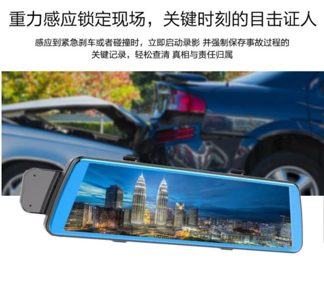 9.3寸触摸IPS全屏流媒体后视镜行车记录仪无光夜视双镜头180P720P