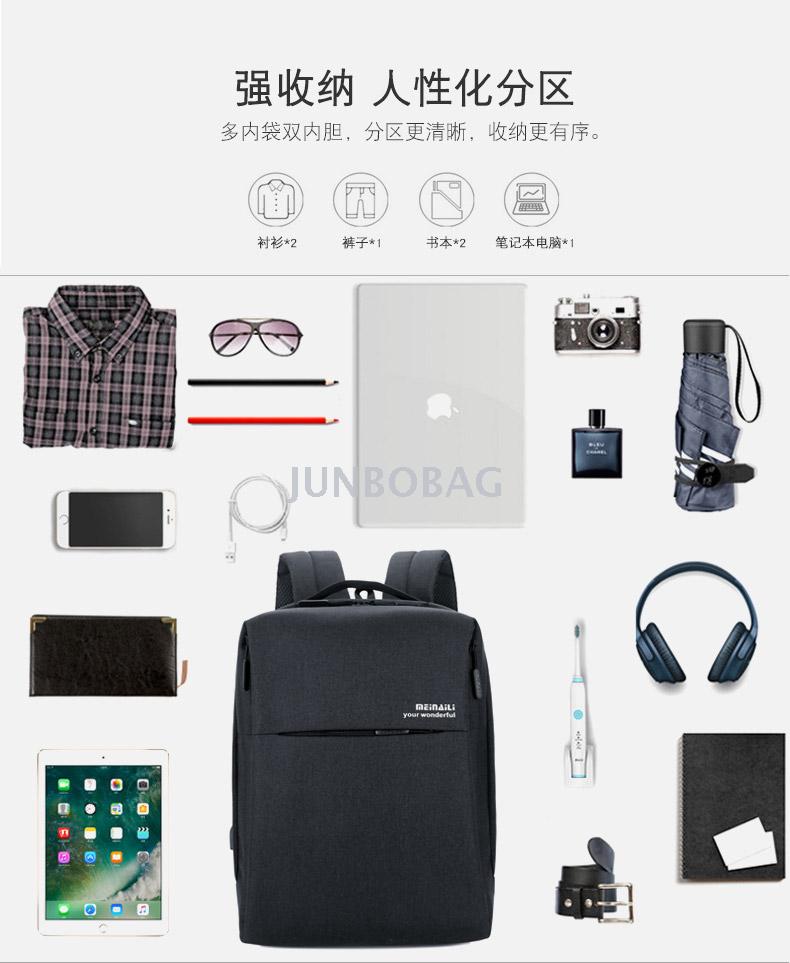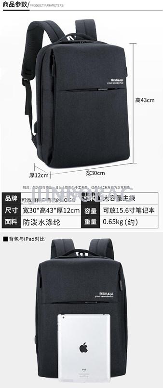 货源类别:现货是否库存:是库存类型:整单货号:M024是否支持分销:支持分销箱包大小:中容量:20-35L包内部结构:证件袋,手机袋,夹层拉链袋,电脑插袋开盖方式:拉链适用性别:男材质:尼龙是否带锁:否有无防雨罩:无功能:防水,耐磨,减负,抗震,加工方式:印花硬度:软图案:纯色适用送礼场合:展销会加印LOGO:可以加工定制:是风格:商务里料质地:涤纶配件种类:usb