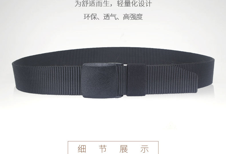 帆布腰带,款式新颖,造型美观大方,男人需要这样的好腰带! ? 货? ? ? 号8802? 扣头材质:塑钢 ? 腰带宽度:3.8cm 腰带颜色:黑色/蓝色/卡其/军绿/咖啡 腰带重量:105克/条(110cm长度),(稍有些许误差) 整箱数量:120条 箱? ? ? 规:50*25*30cm 需要加长的请联系客服,每加长10cm加3角。不议价,谢谢! ?
