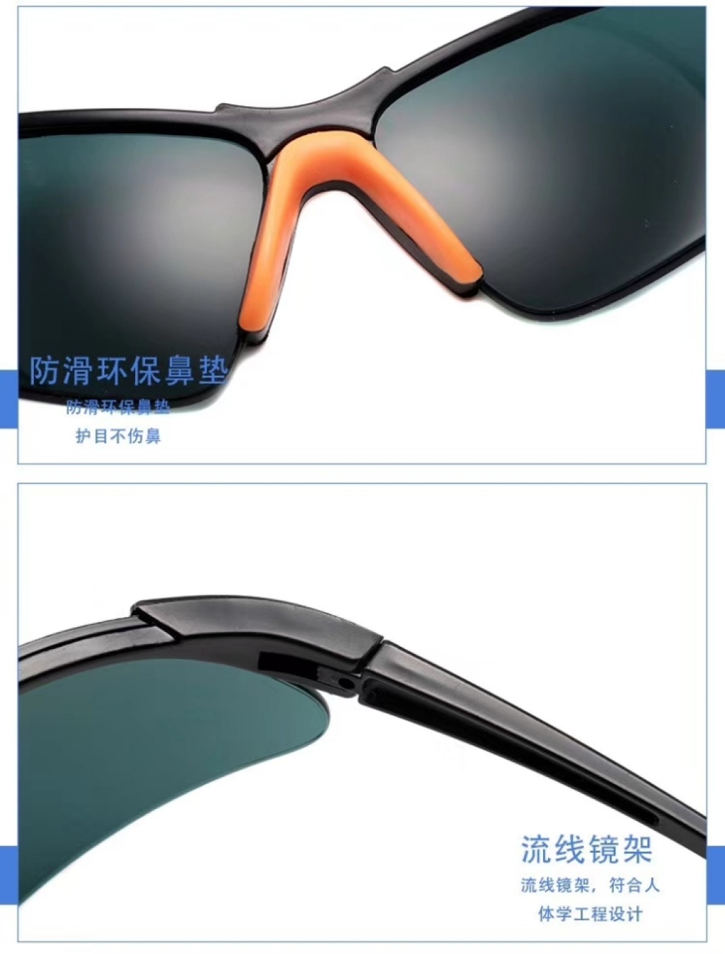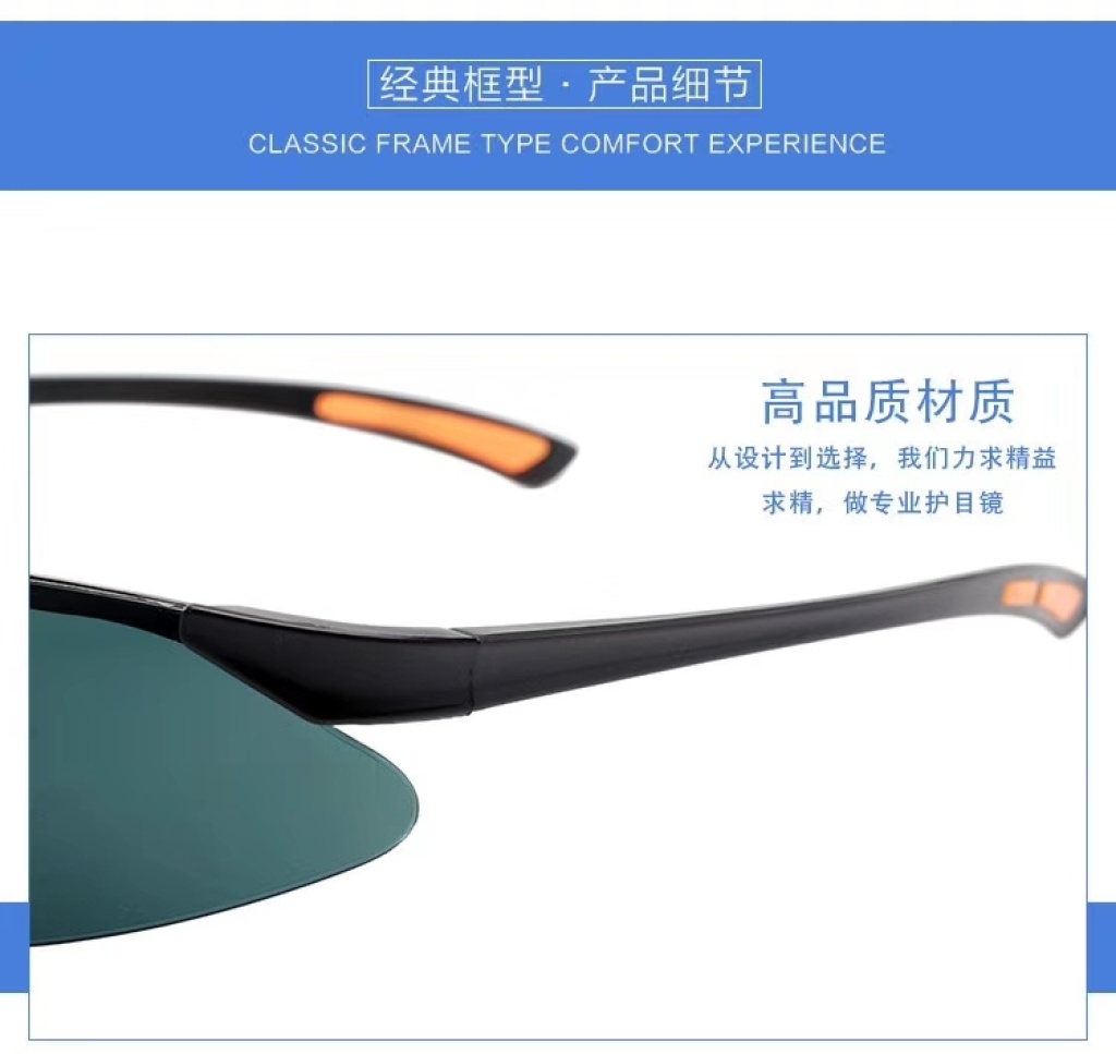 1.眉棱及侧翼防护设计,阻挡上面及侧面飞来的颗粒.沙石,为眼部提供全面的保护