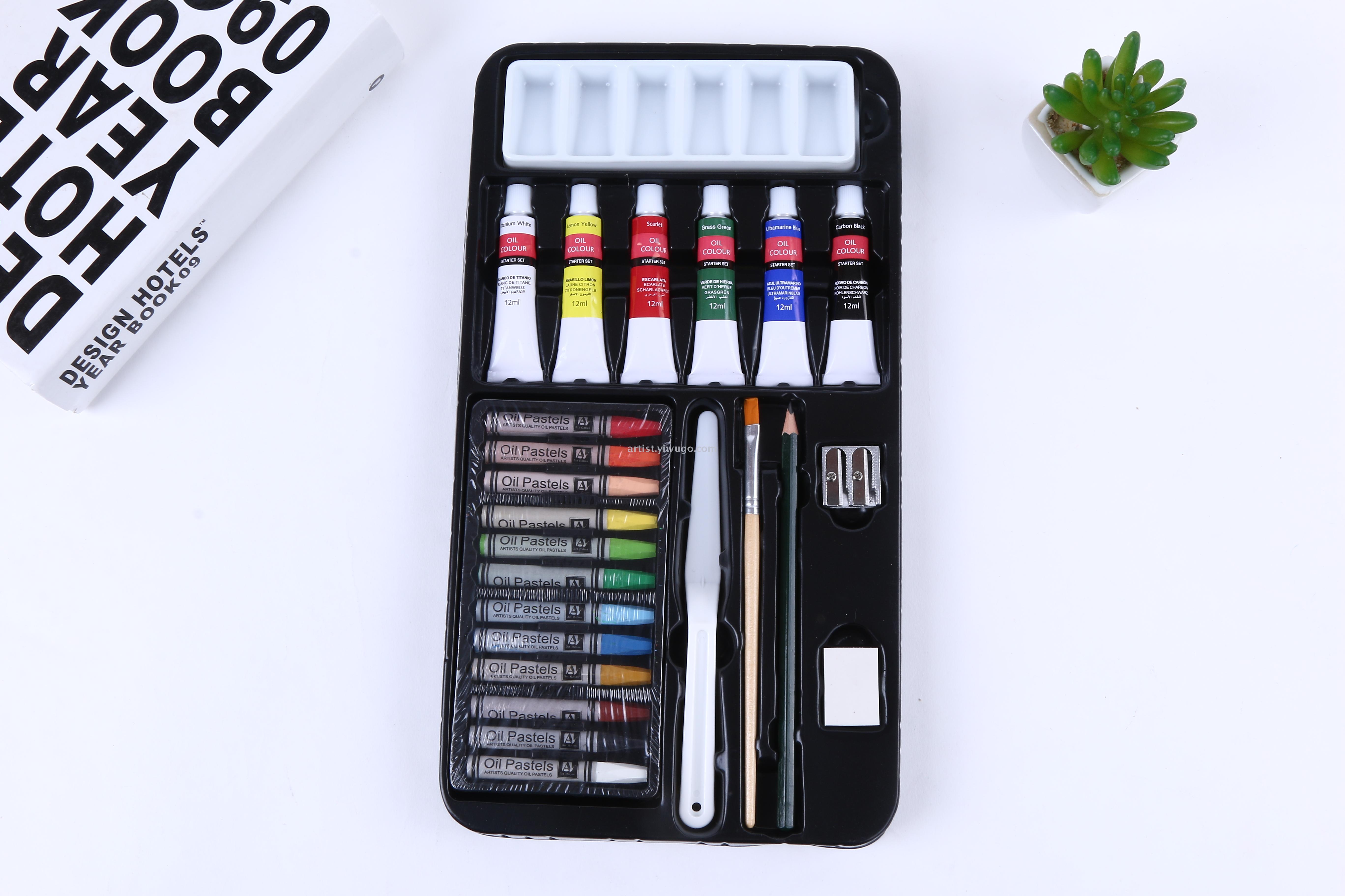 颜色:6色 *12ML 颜料套装+ 油画棒画笔等