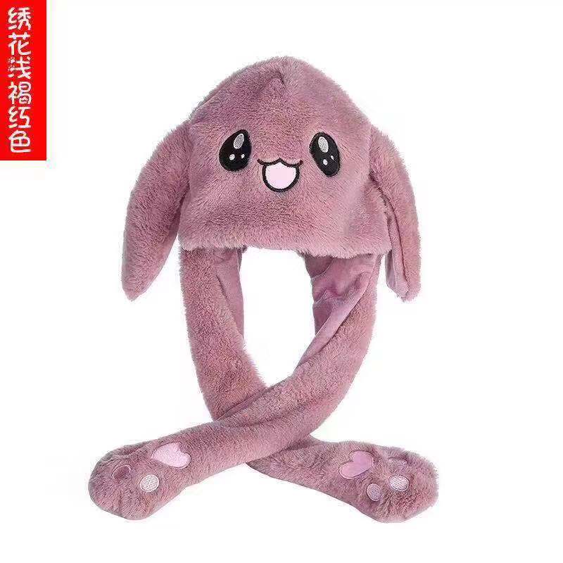抖音同款网红兔子耳朵帽子一捏耳朵会动的兔子帽子加绒保暖帽