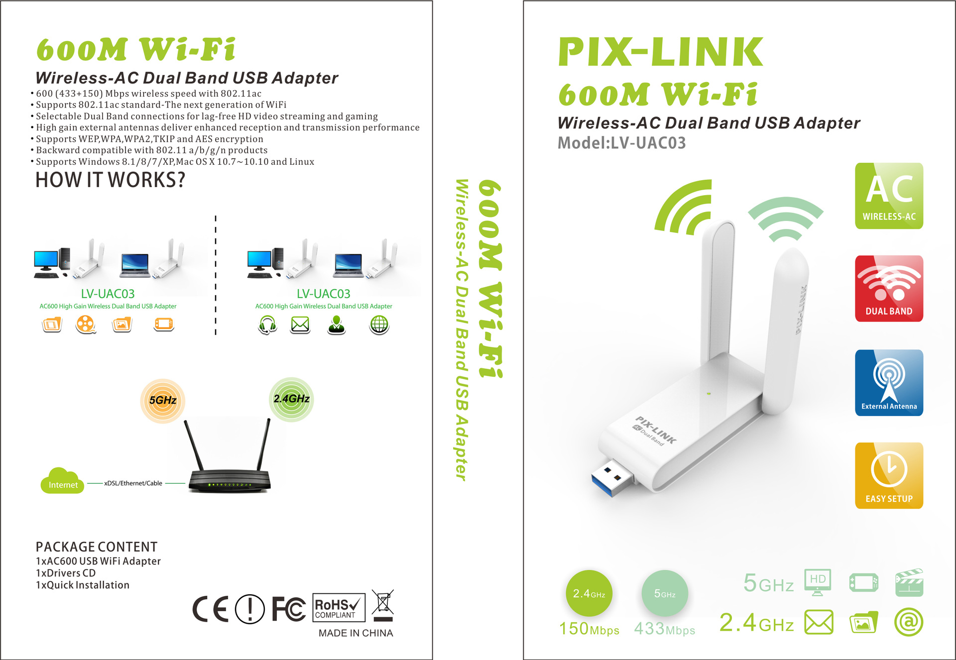 工厂直销 AC600M双频wifi USB适配器台式电脑笔记本无线网卡UAC03