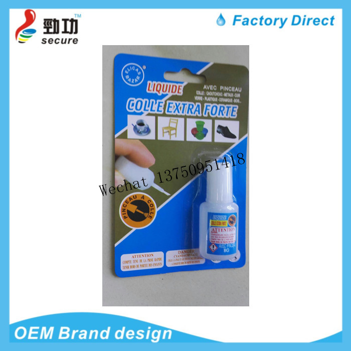 产品说明:本产品为液体溶剂,主要成分为氰基丙烯酸乙酯,单一成分,具有高浓度,粘效快的特点。使用时,请将用处擦干净,将胶水挤出,滴到用处即可。(温馨提示:请置产品于低温下保存,不用时,请注意盖好盖子,避免溶剂挥发,影响下次使用。请置于小孩接触不到的地方,万一不慎将胶水弄入眼睛,请立即用热水或者自来水冲洗,或去医院用药剂冲洗。)