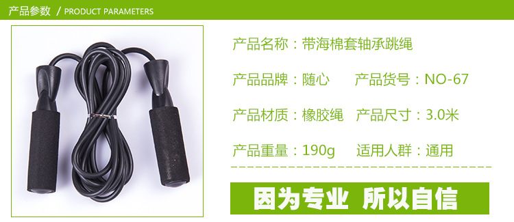带海棉套轴承跳绳,颜色;黑色,绳长3米,一件200条