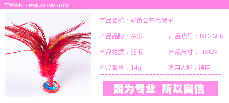 厂家直销彩底公鸡毛毽子,一合20个,一件1000个