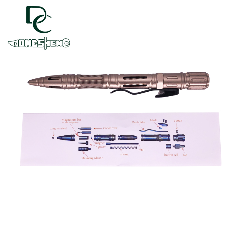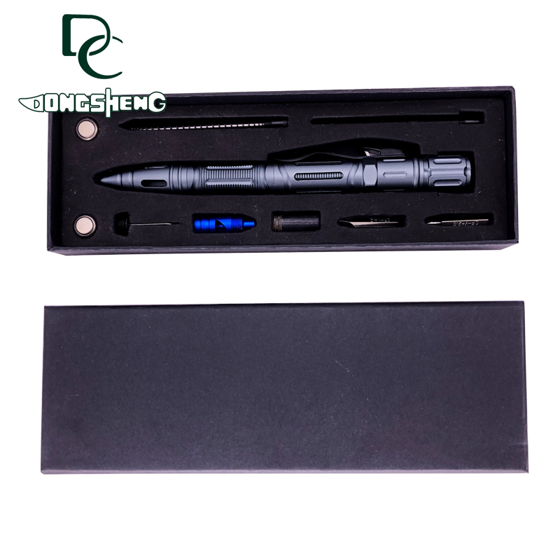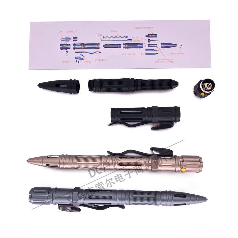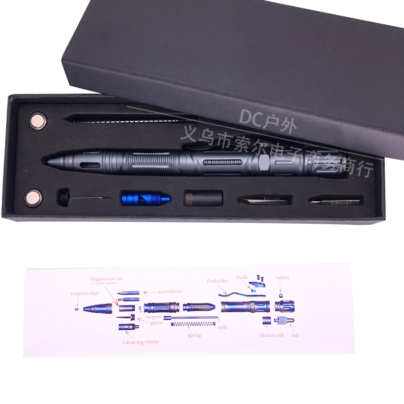 2.全新创意设计,集多种功能一体化结构:书写、破窗、照明、切割、防卫、EDC工具。