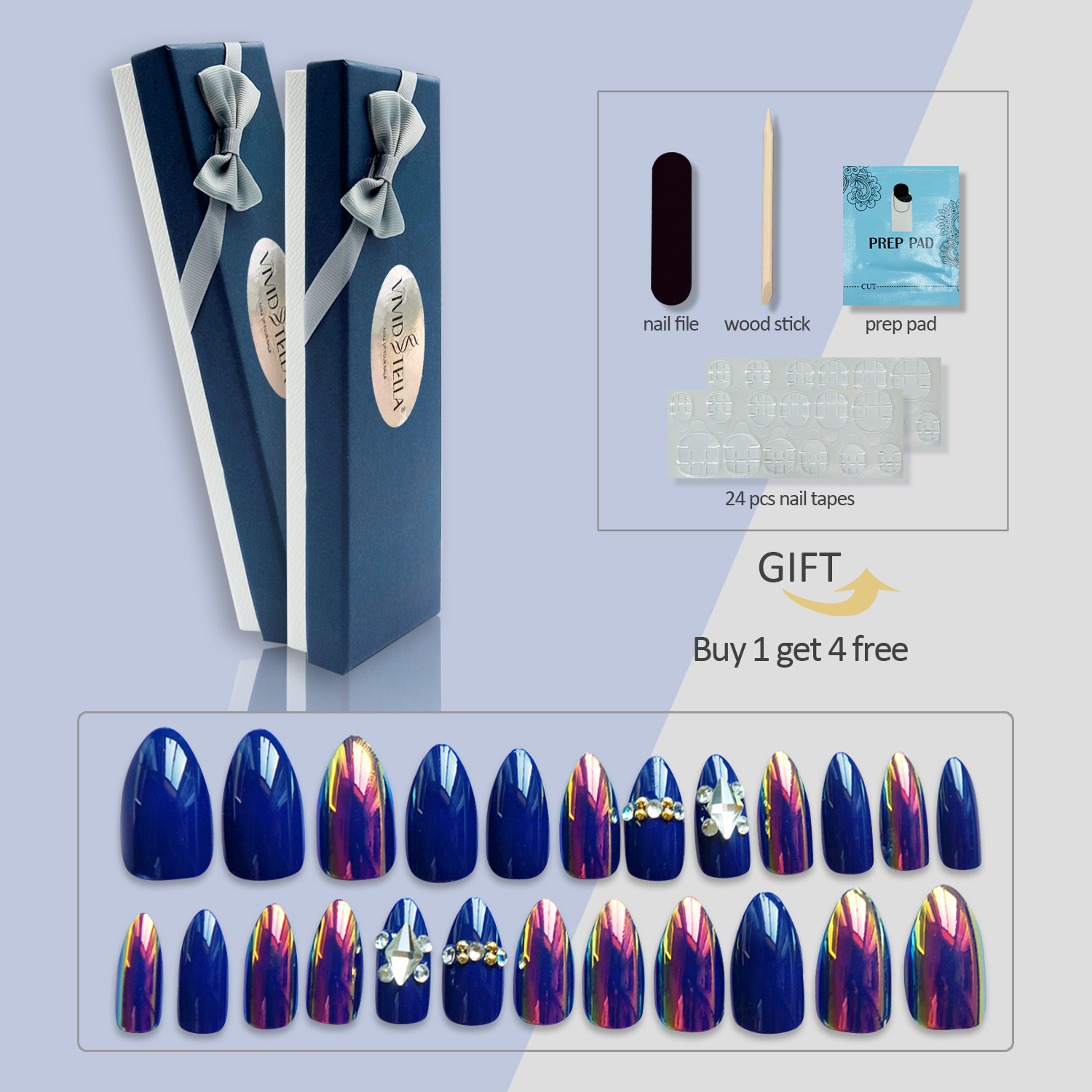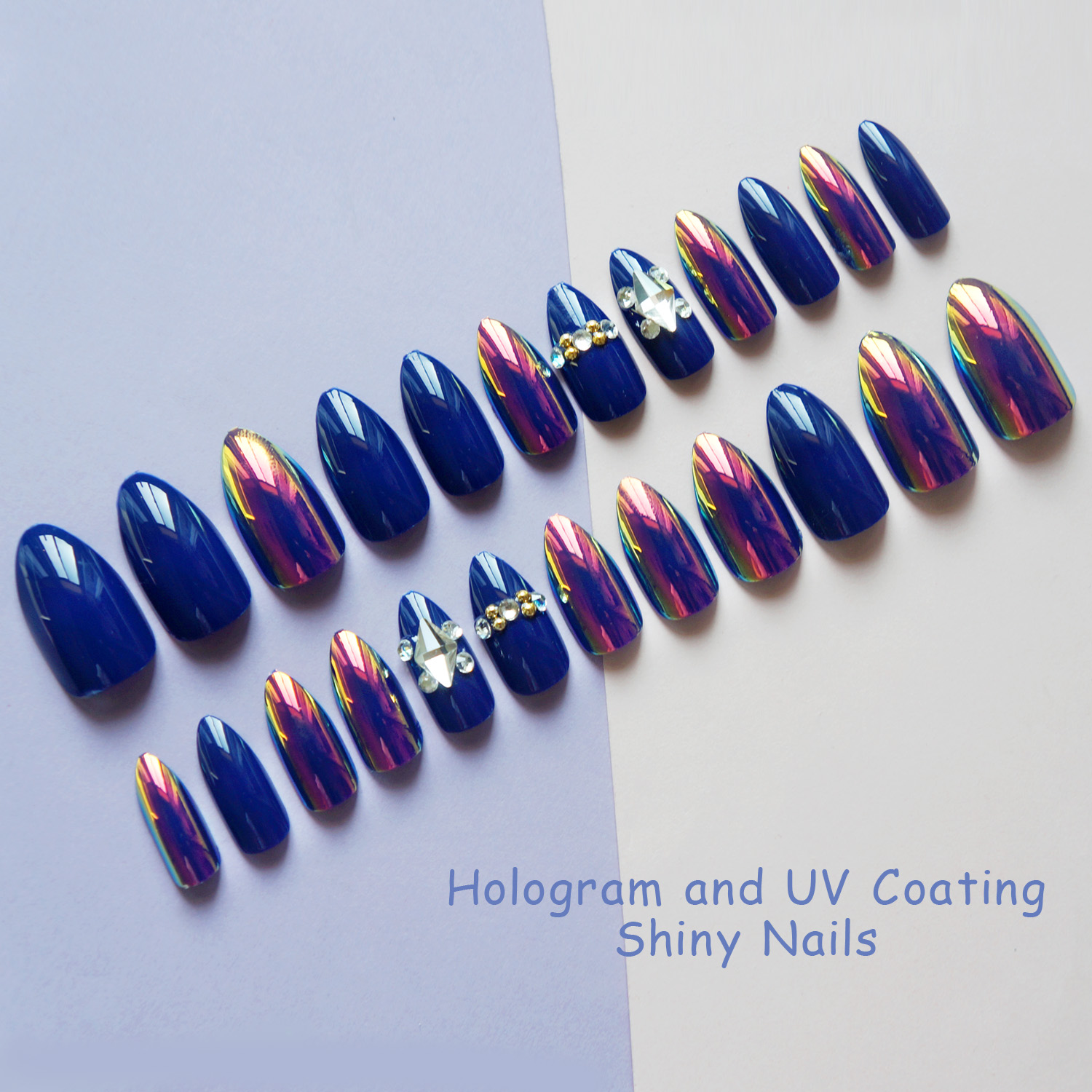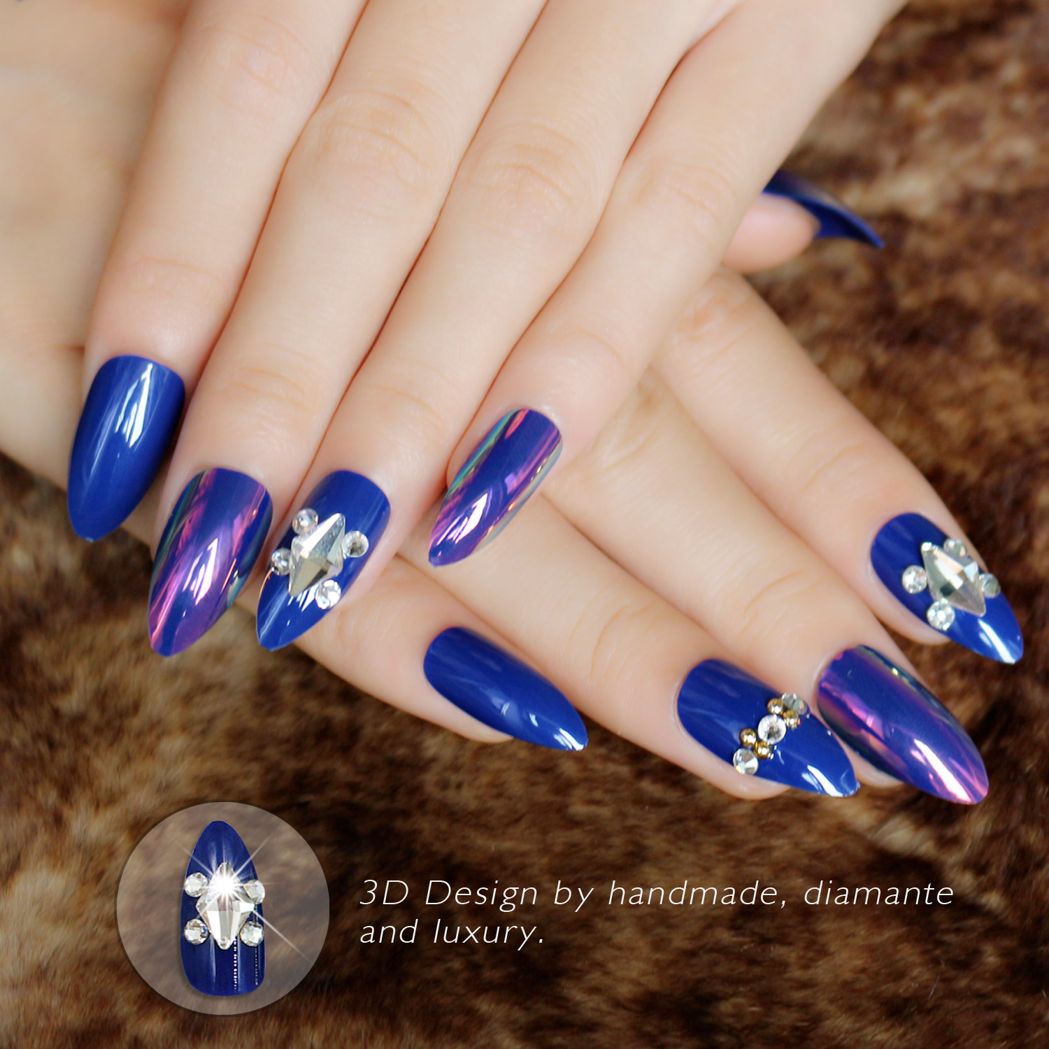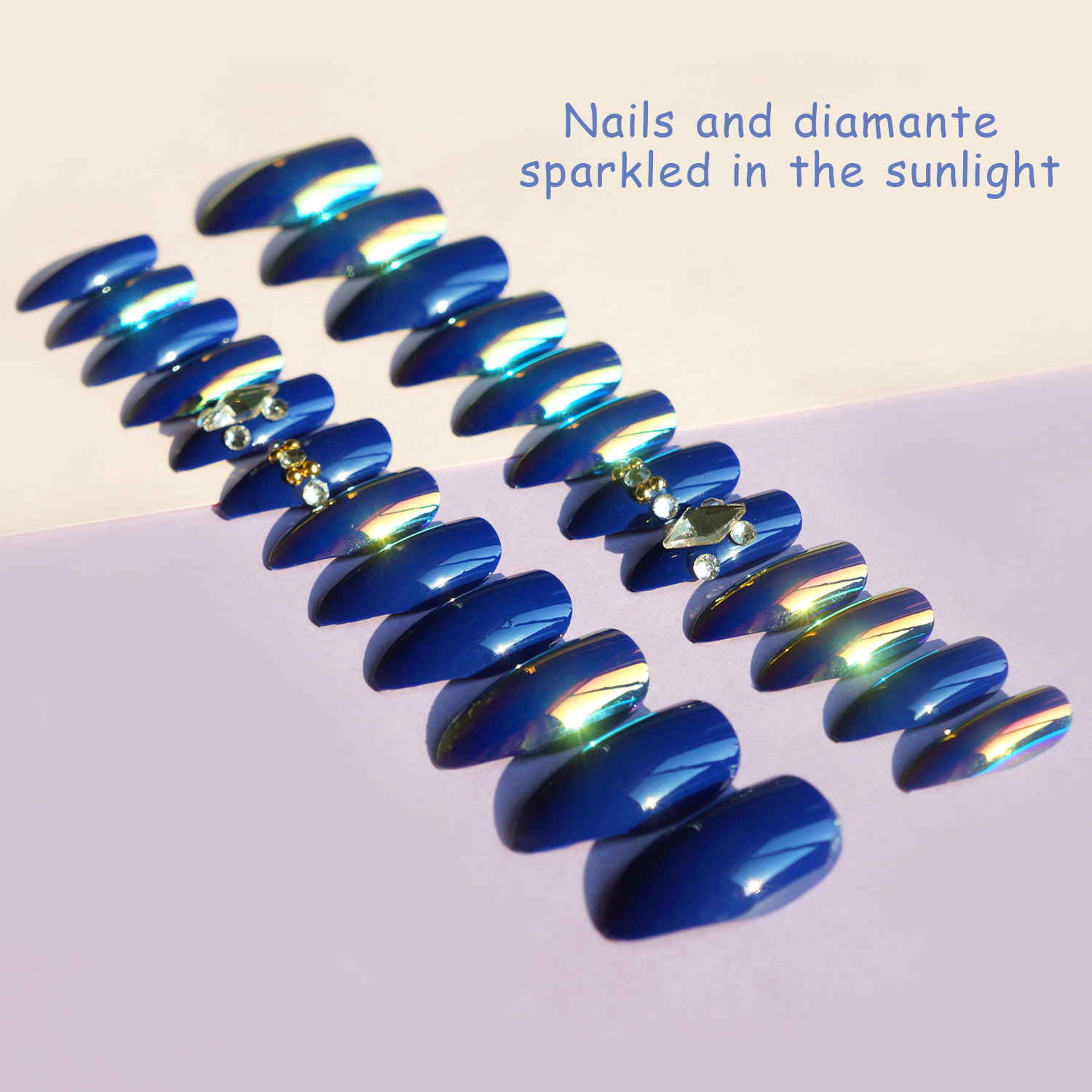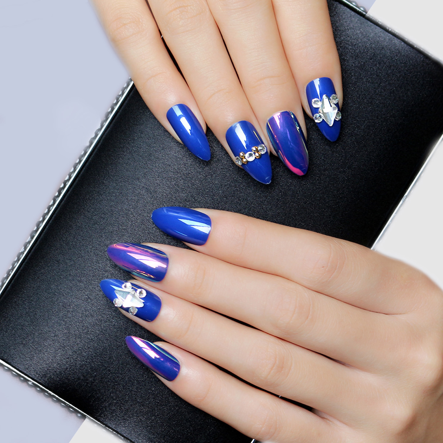 薇丝黛拉 海洋之心宝蓝色假指甲 磷光带钻穿戴 3D立体 可反复使用
