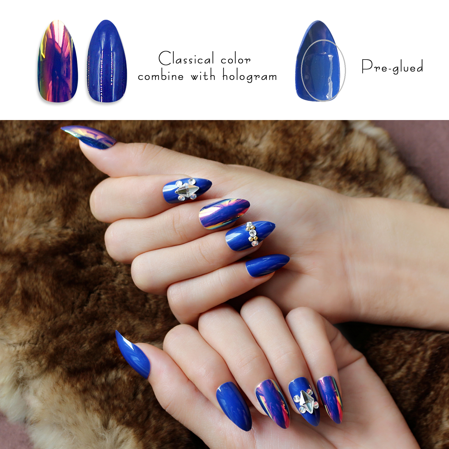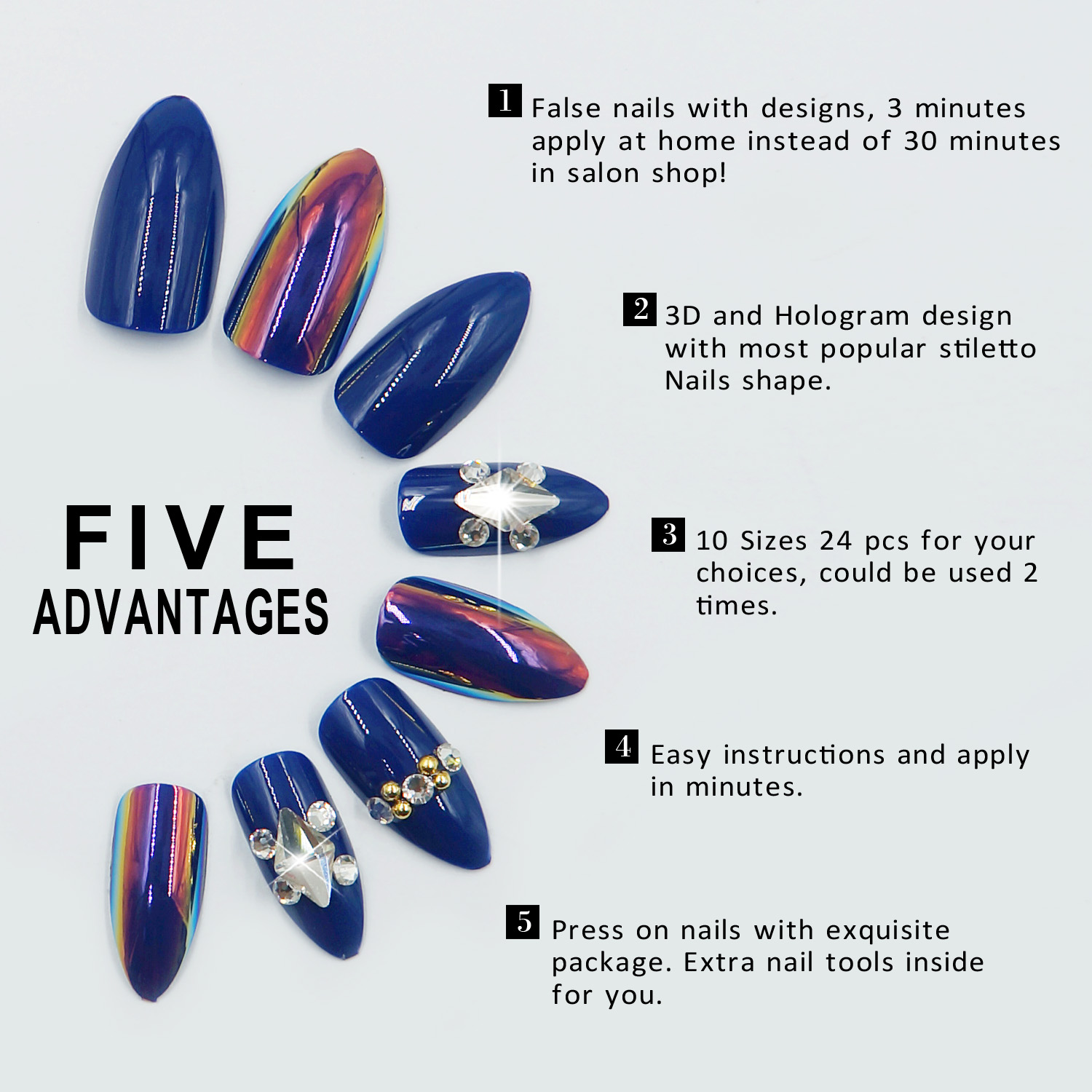 薇丝黛拉 海洋之心宝蓝色假指甲 磷光带钻穿戴 3D立体 可反复使用 投诉