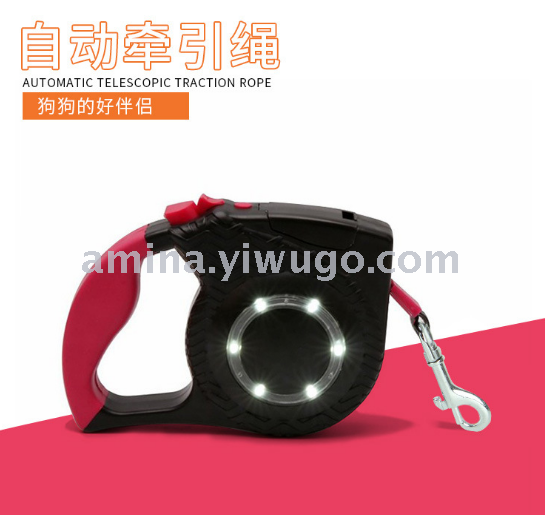 宠物自动伸缩牵引绳狗狗猫咪LED灯反光带自动伸缩牵引器宠物用品