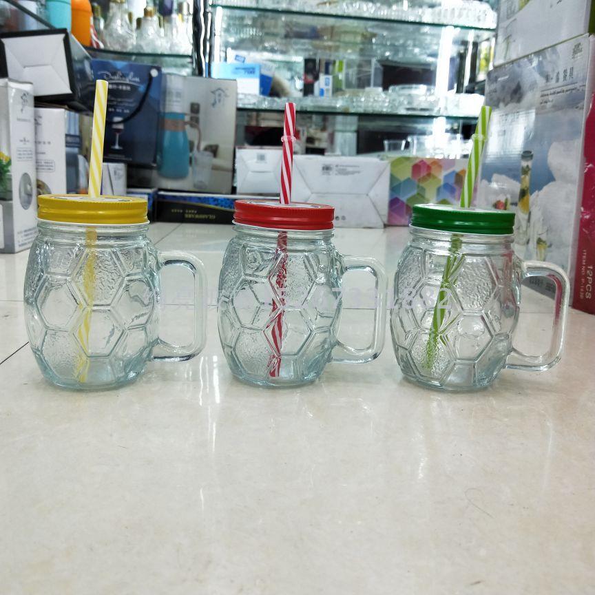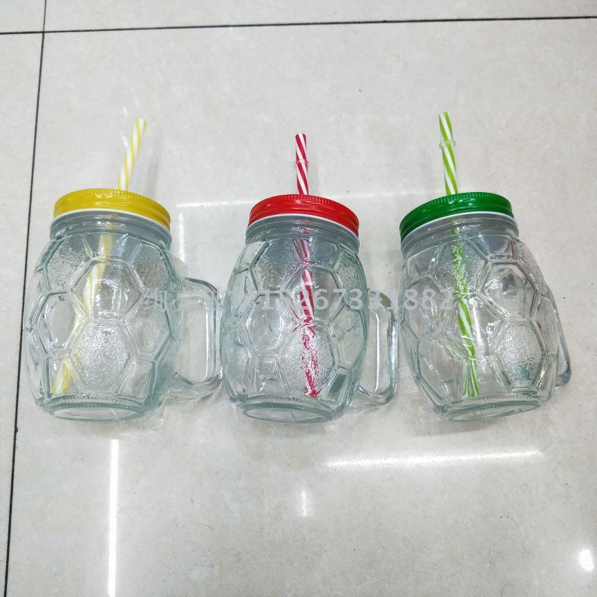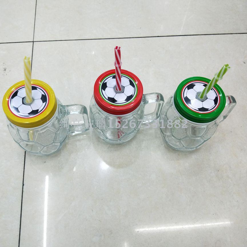 透明吸管玻璃杯足球梅森杯把子杯 果汁冷饮杯