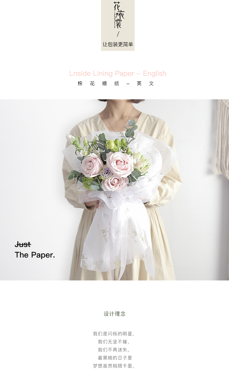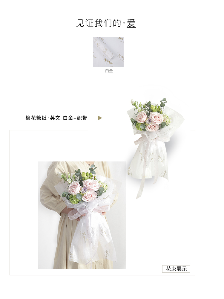 花衣裳新款棉花糖内衬纸英文鲜花花束包装纸礼品包装保鲜纸花店用 投诉