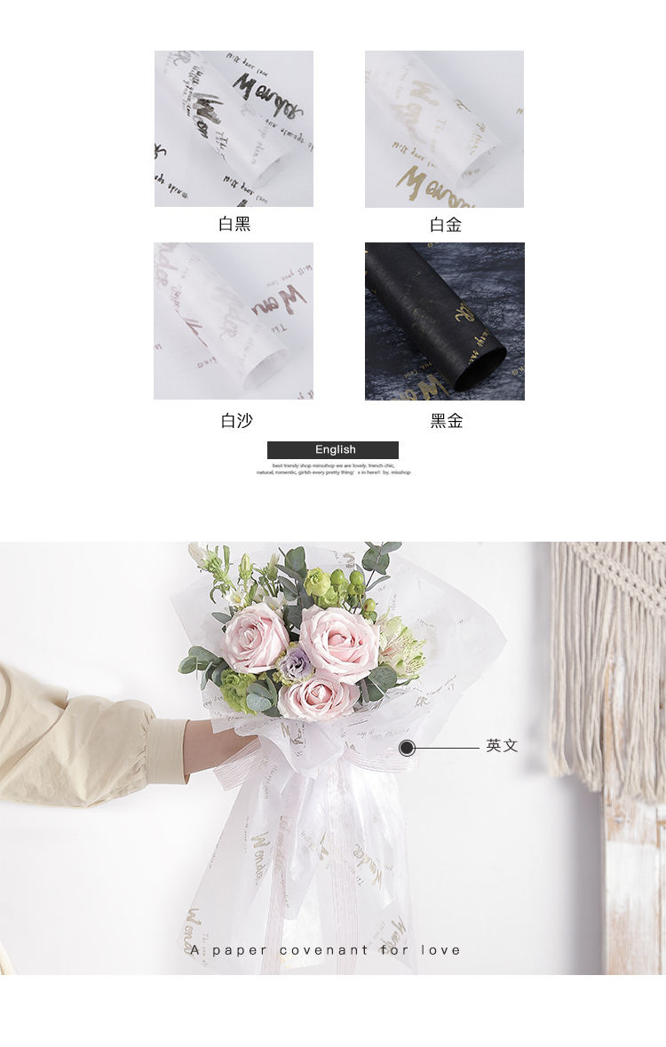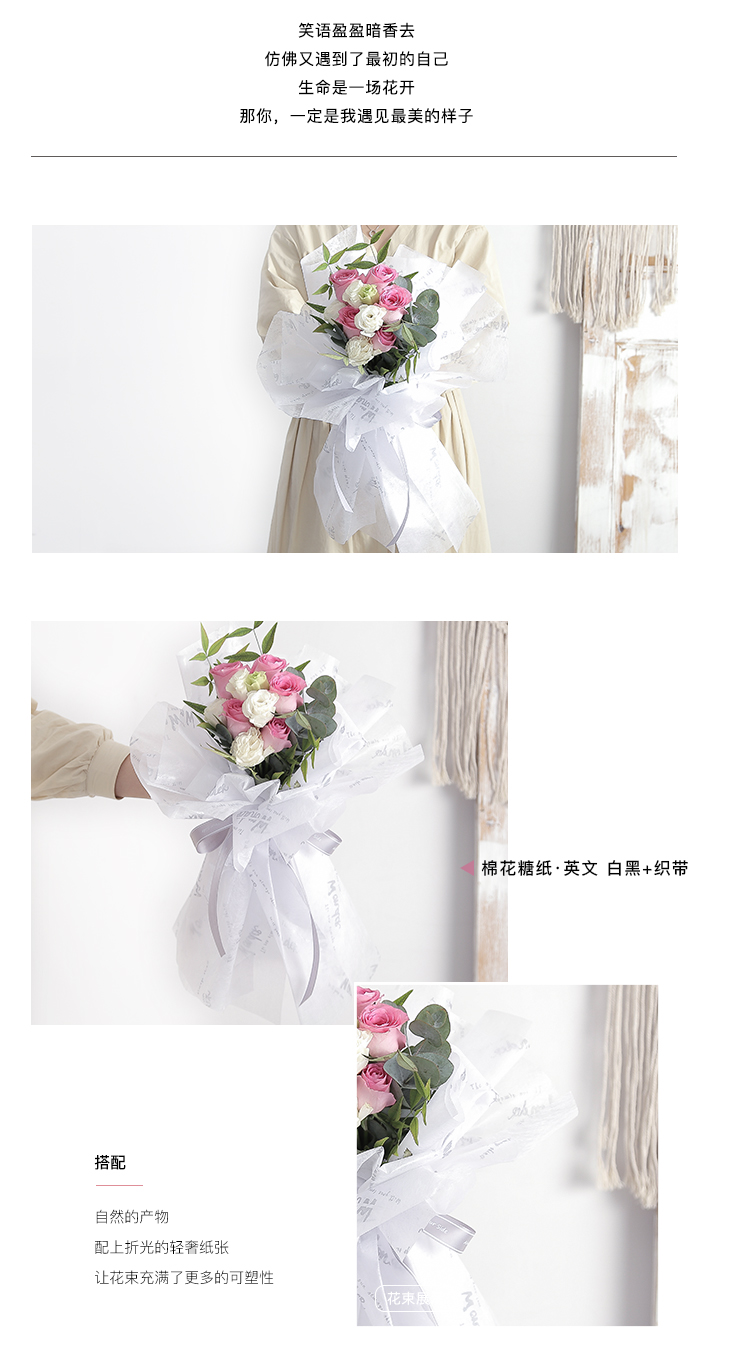 花衣裳新款棉花糖内衬纸英文鲜花花束包装纸礼品包装保鲜纸花店用