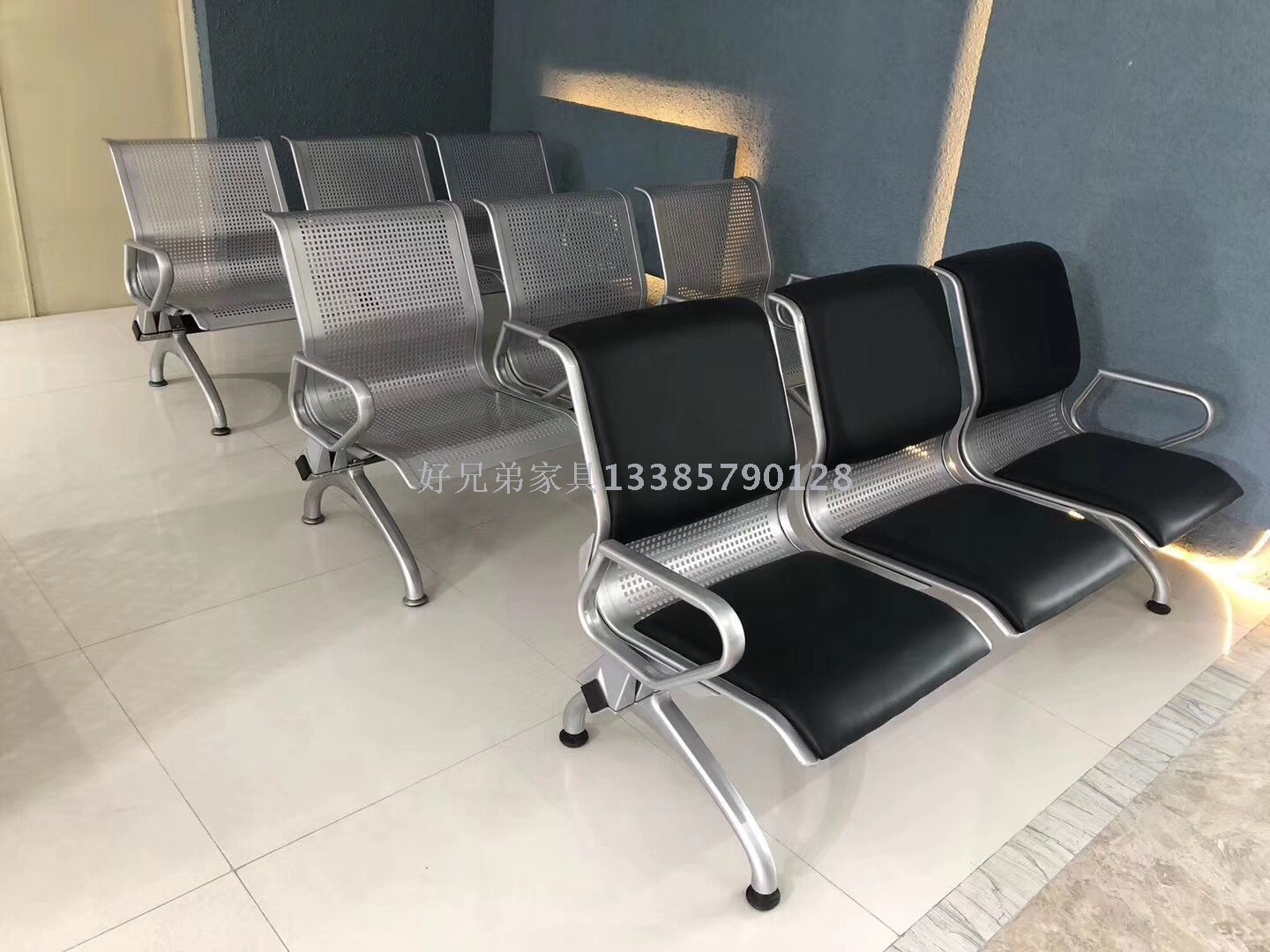 三人位排椅医院候诊椅输液椅休息联排公共座椅机场椅等候椅不锈钢