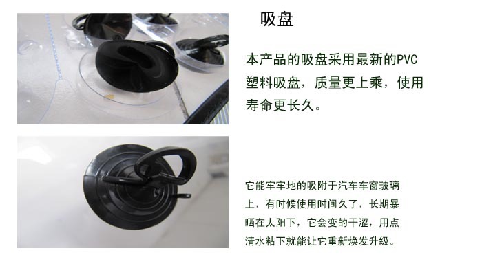 答:前挡为铝箔材质,侧挡为纱,能够有效降低车内温度,给您一个清凉的驾车环境。前挡附赠两个吸盘,侧挡附赠两个吸盘,请亲们拆的时候小心,以免遗落吸盘。附赠的吸盘由于长时间挤压有些变形,用开水烫一下即可恢复原状。
