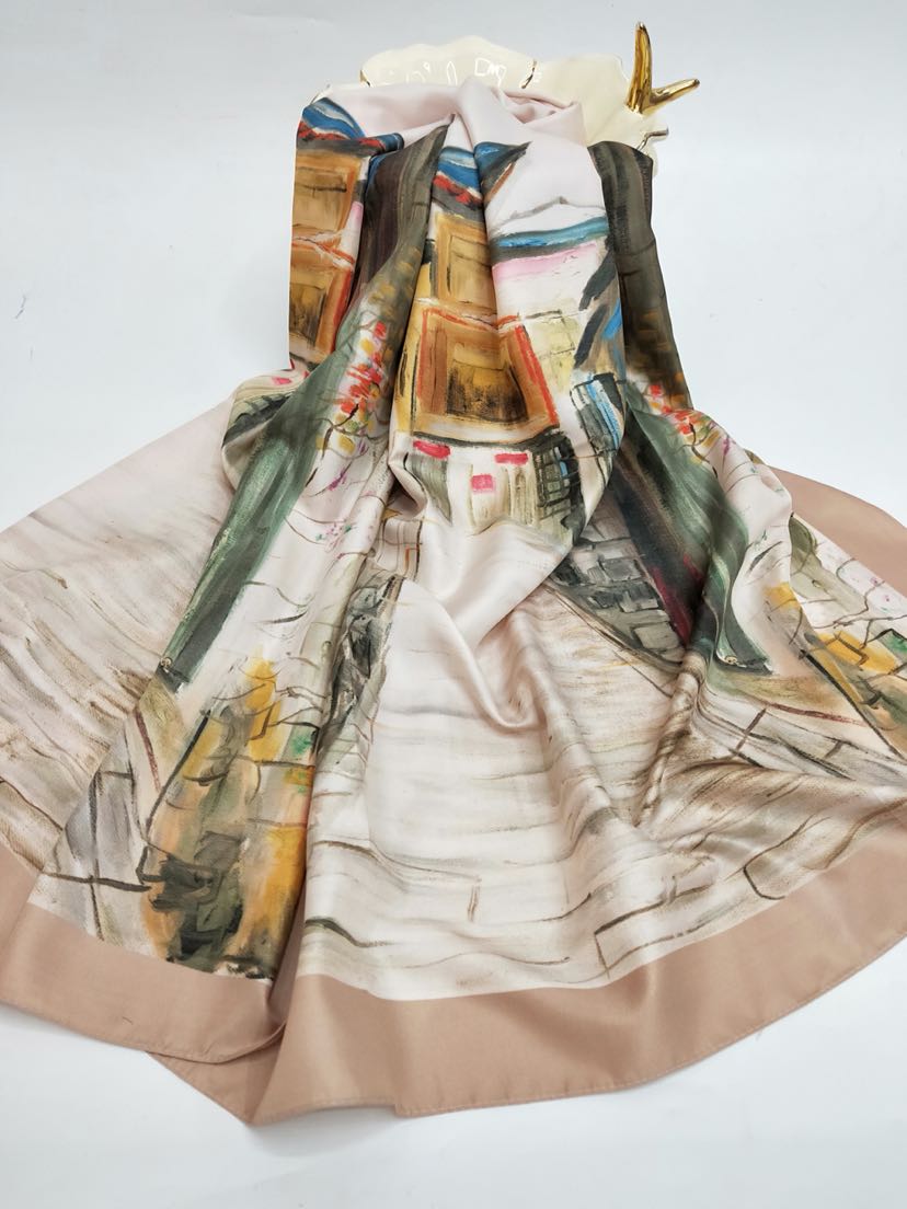 桑蚕丝真丝斜纹丝巾披肩数码印花长巾时尚百搭款围巾气质防晒 English | 投诉