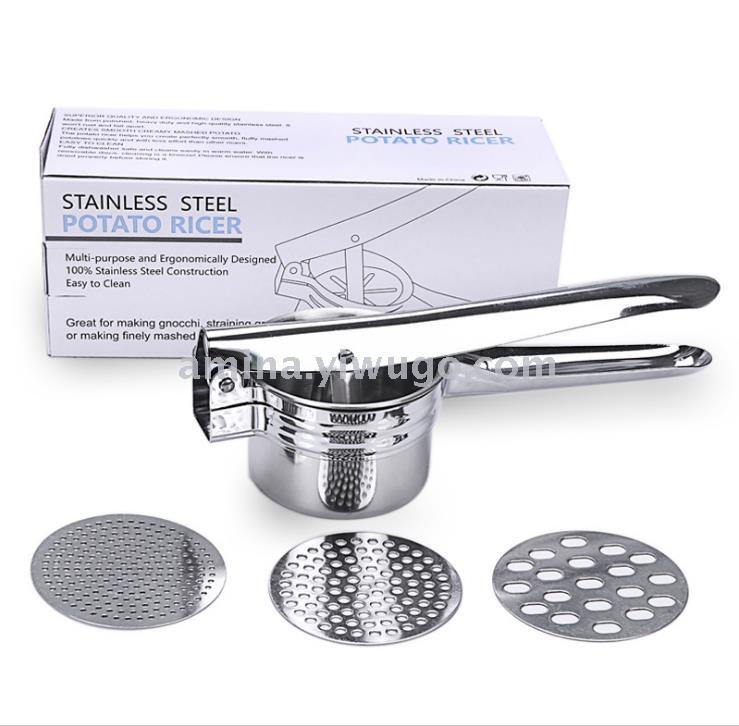 亚马逊不锈钢土豆压泥器 南瓜水果榨汁马铃薯捣碎器3张更换网片