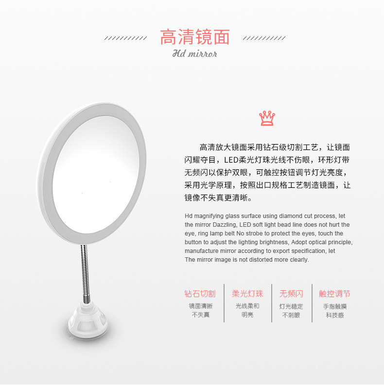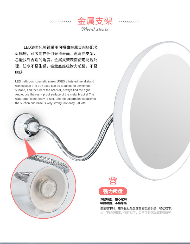 【产品名称】: LED化妆镜带吸盘