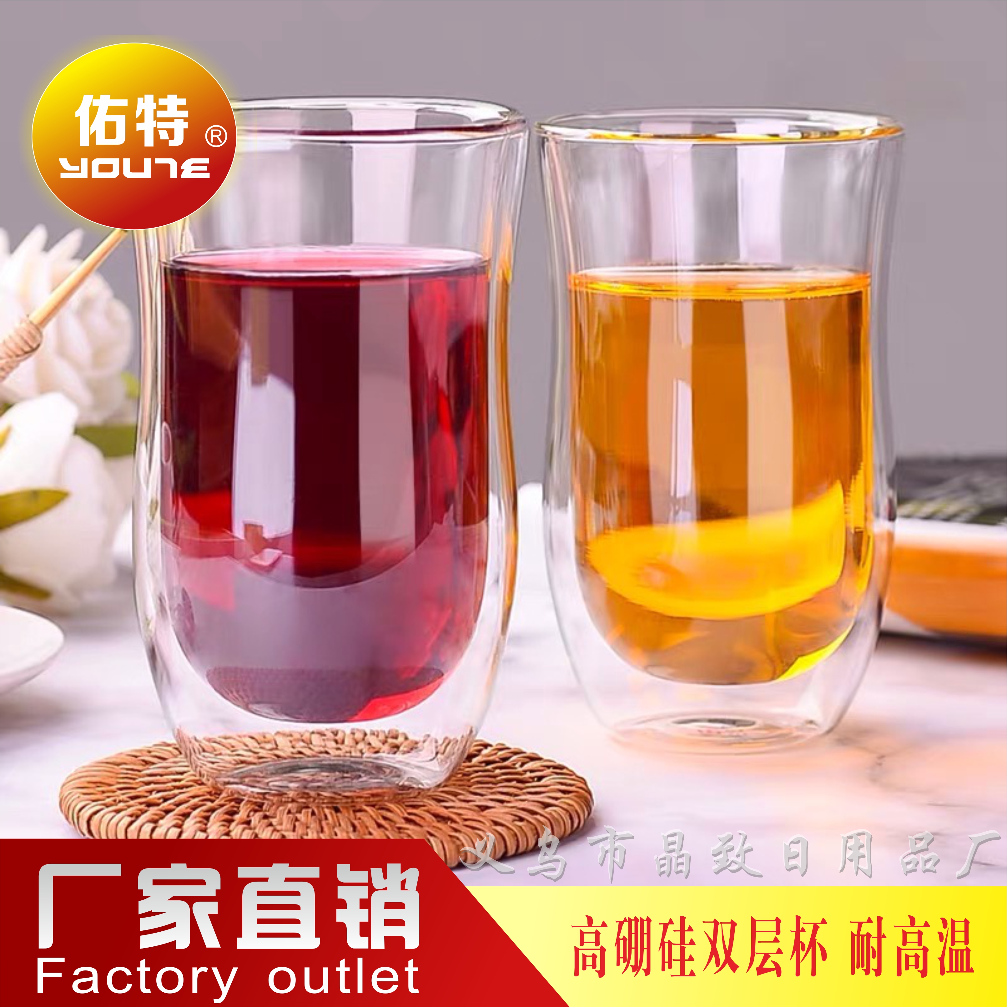 佑特双层玻璃杯高硼硅玻璃防烫茶杯咖啡杯牛奶杯果汁饮料杯泡茶杯