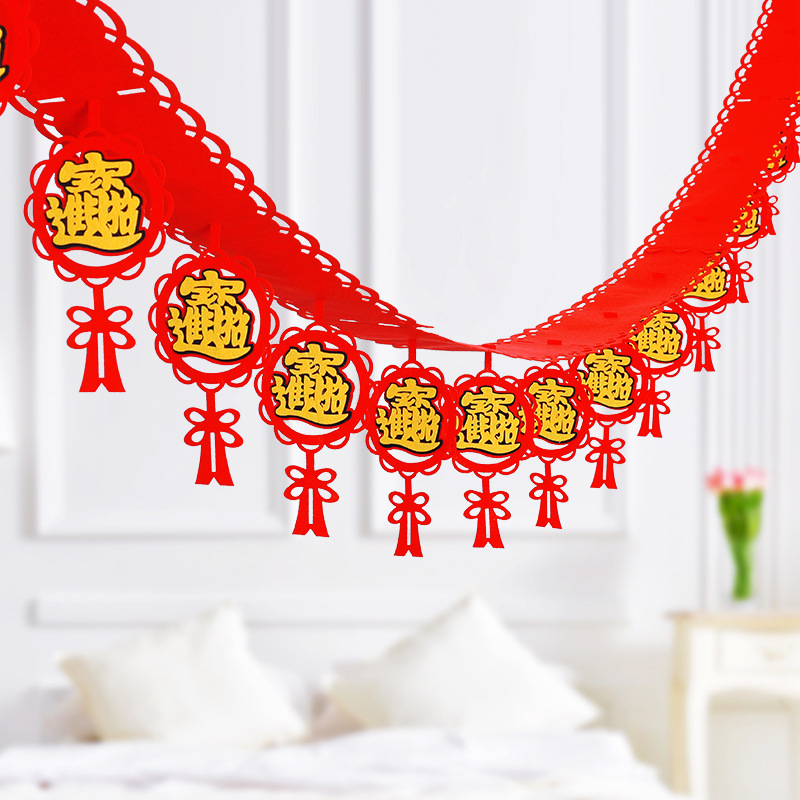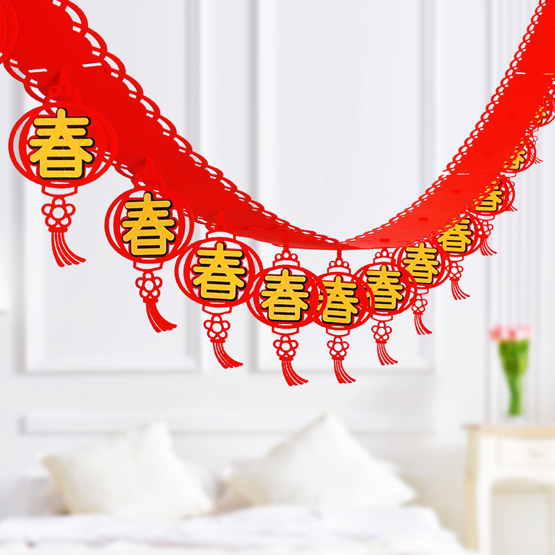 品名:新年春节无纺布立体贴金拉旗