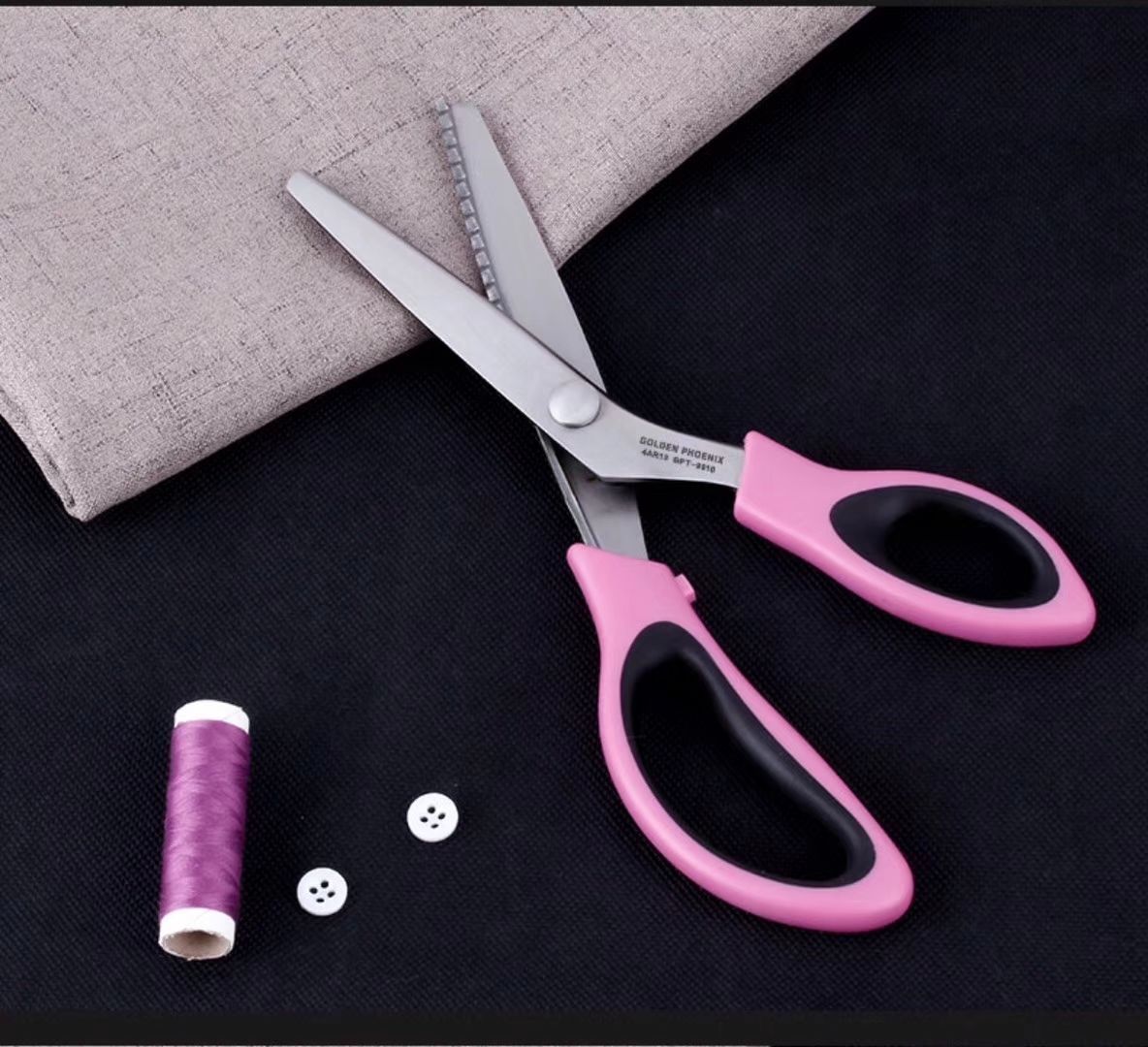 工厂直销多种款式布样剪刀 双色柄各种牙型布样剪刀 投诉