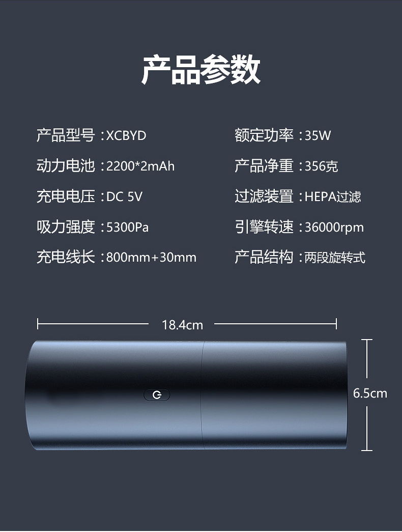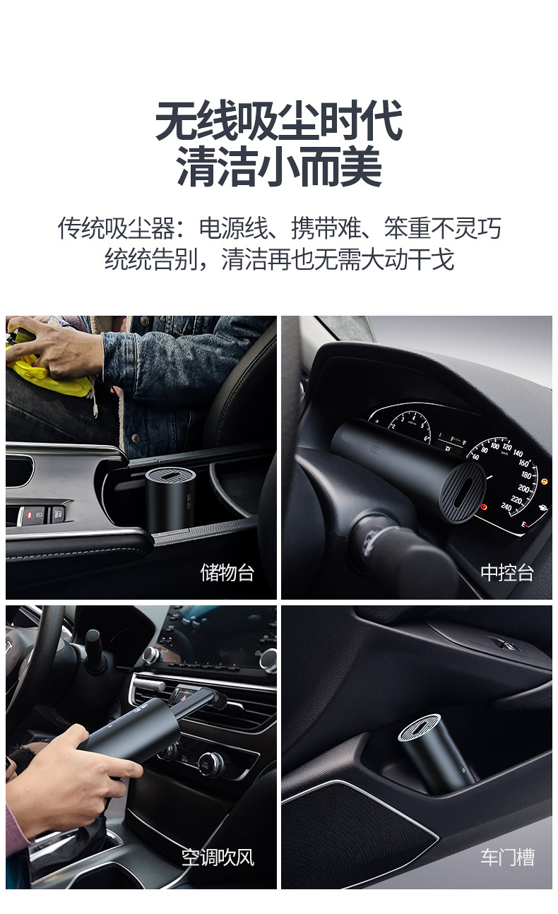 额定电压:5(V) 额定输入功率:35(W) 真空吸力:5300(mbar) 货号:速影无线吸尘器001颜色分类:白色,黑色