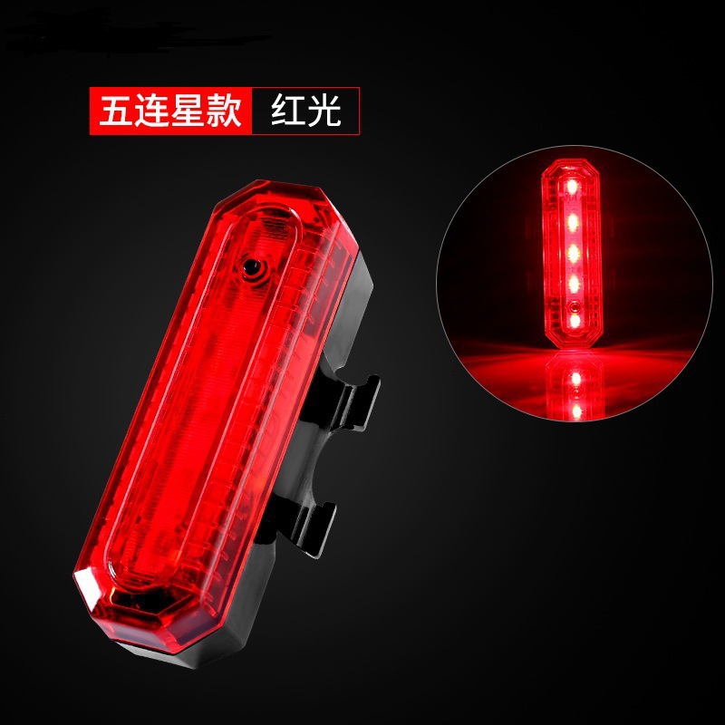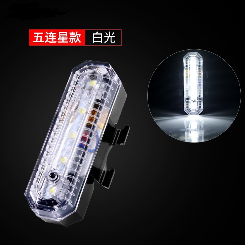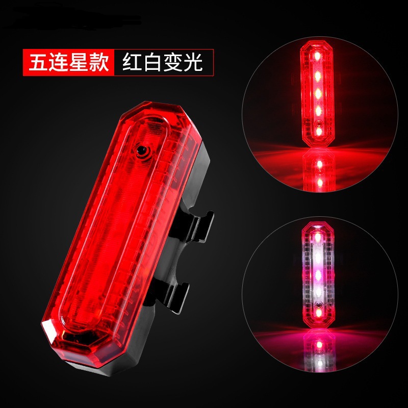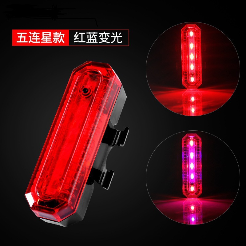 JH-818自行车usb充电尾灯红蓝白5led单车尾灯安全警示灯骑行装备