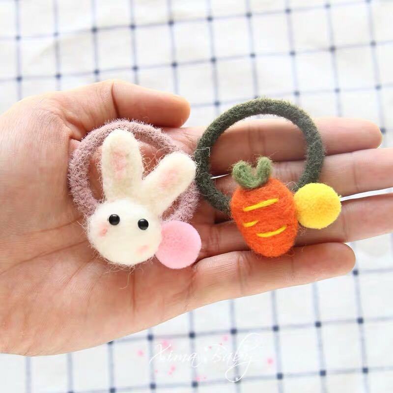 韩国儿童发饰可爱羊毛毡女童发圈宝宝皮筋草莓发绳兔子萝卜头饰YC