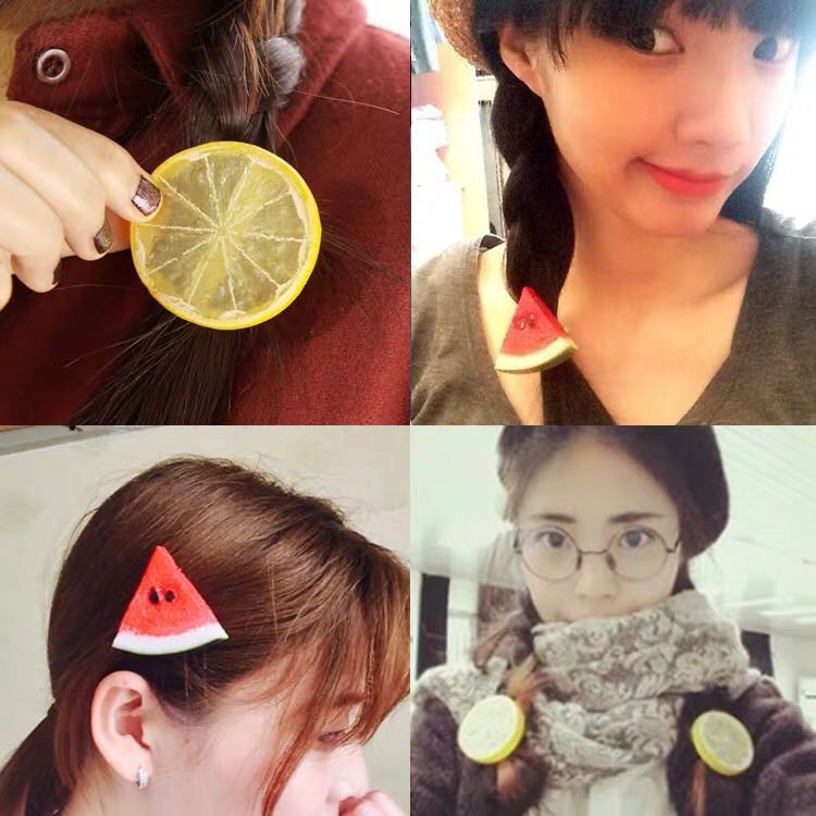 秋硕柠檬发圈韩式边夹发夹欧美森系水果头饰头绳发卡子发饰品