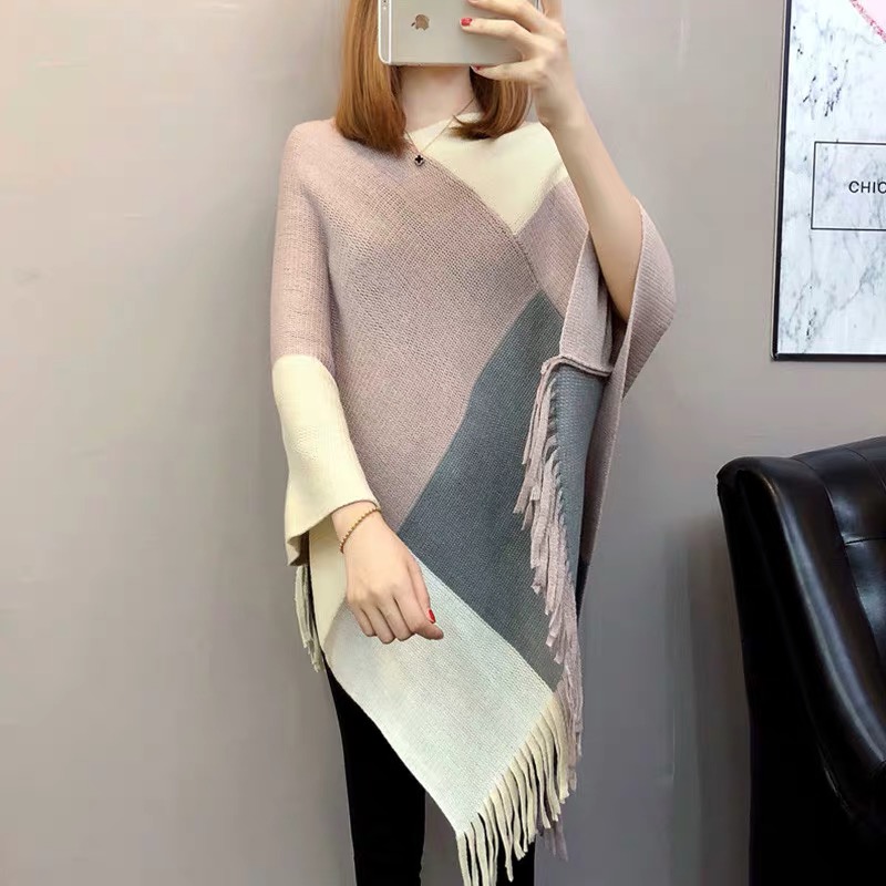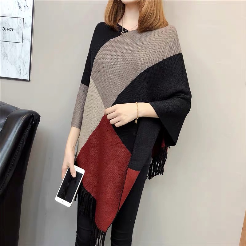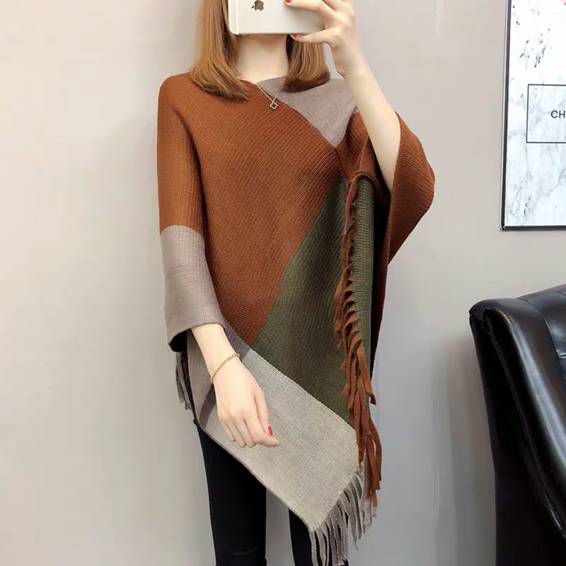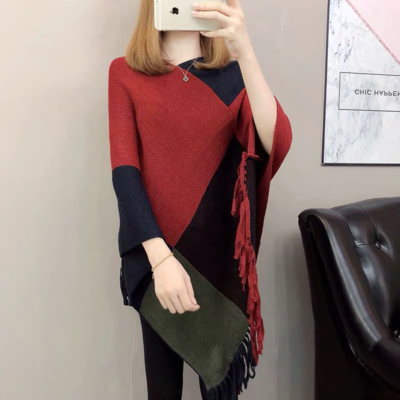 披肩毛线针织披肩斗篷开叉女秋冬民族风流苏蝙蝠罩衫百搭 English | 投诉