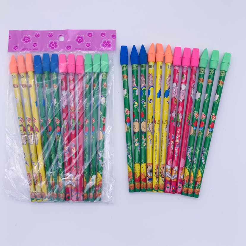 圆杆套膜火箭皮头HB大皮头铅笔12支一袋