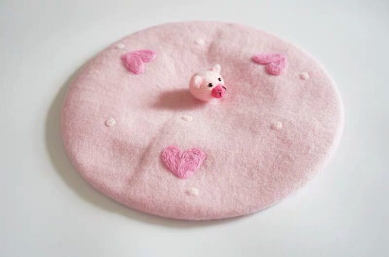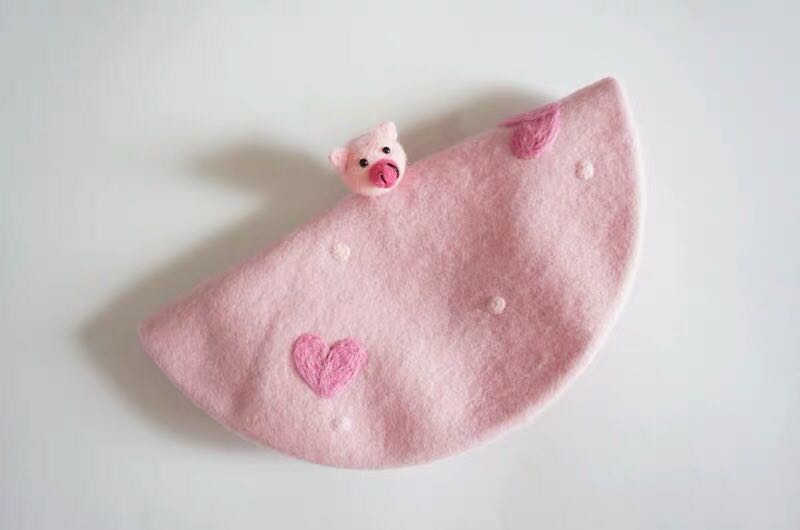 秋硕原创恋爱小猪粉色爱心羊毛毡手工贝雷帽猪年创意新年礼物可爱