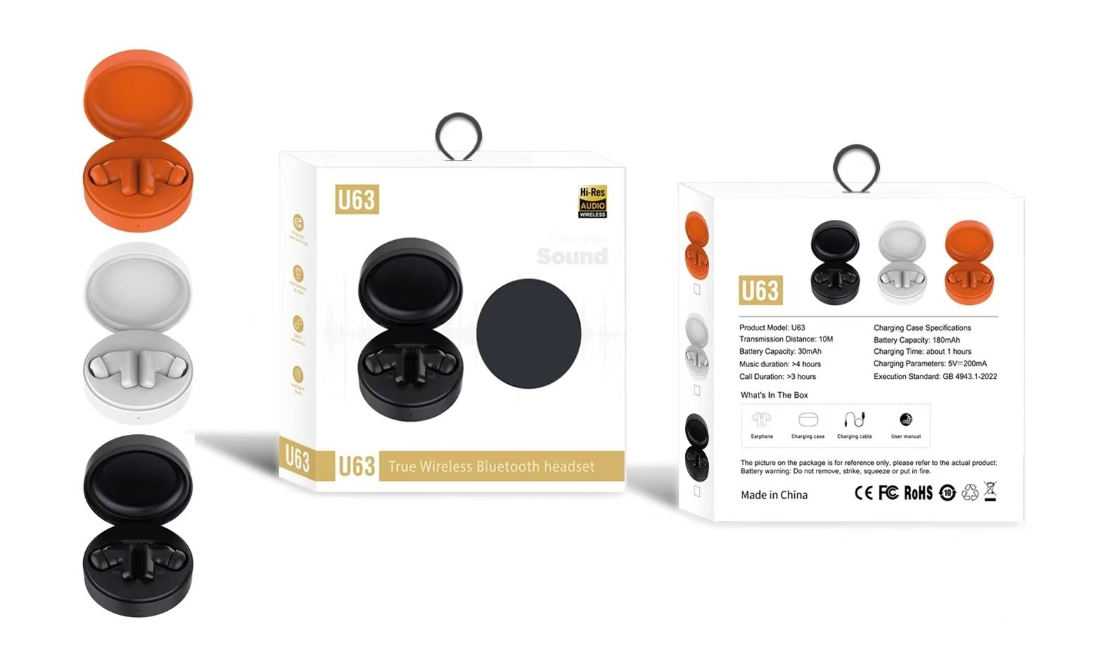 U63无线蓝牙入耳式运动耳机 通话听歌蓝牙触摸控超长续航降噪耳机