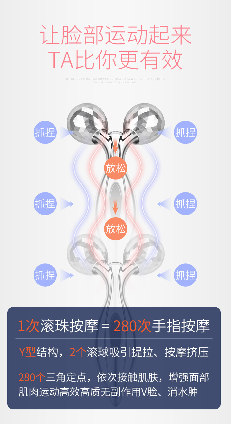 3d滚轮瘦脸仪美容棒脸部按摩器瘦脸神器面部美容仪瘦双下巴美容棒
