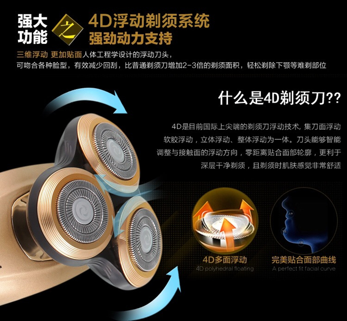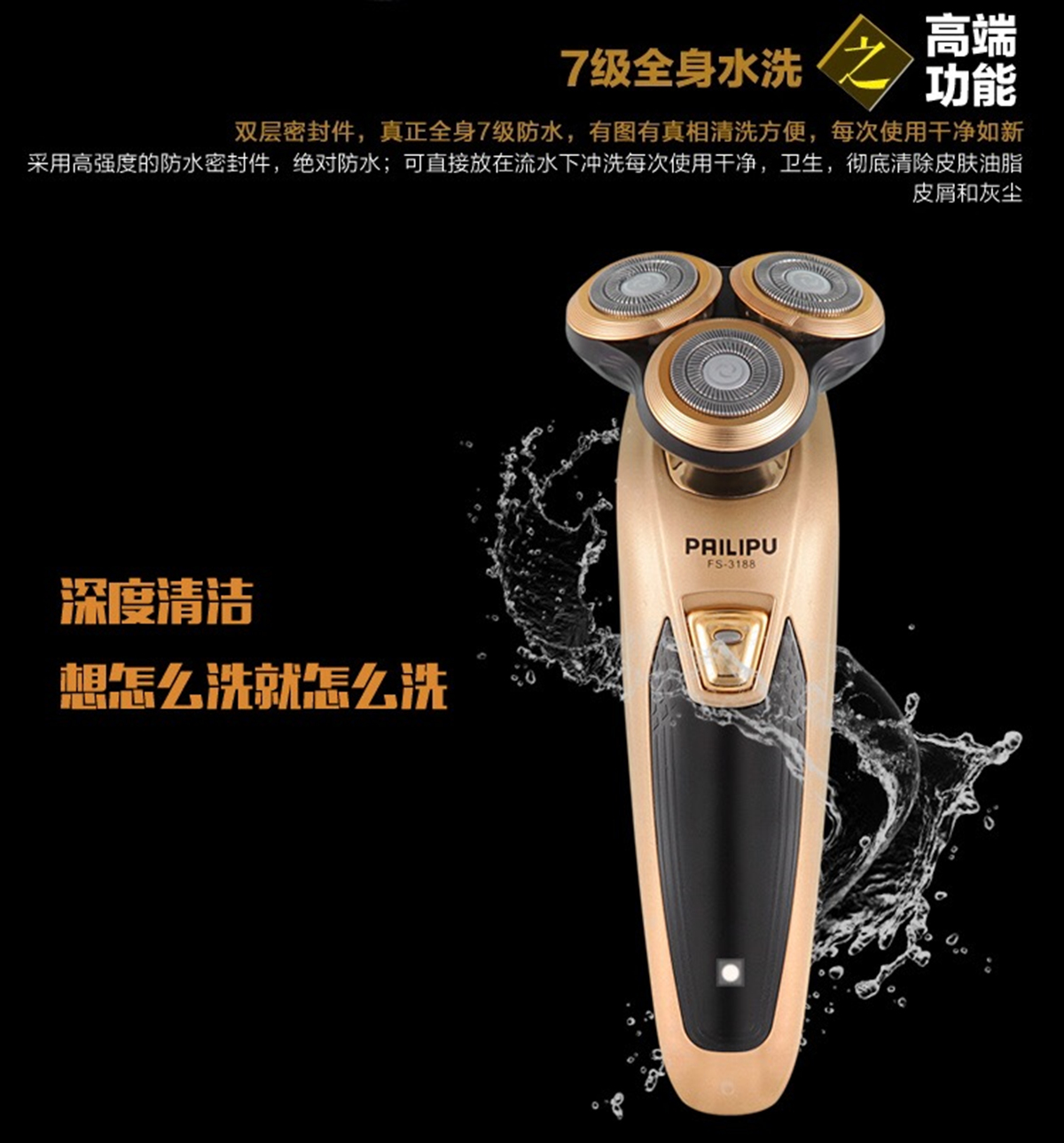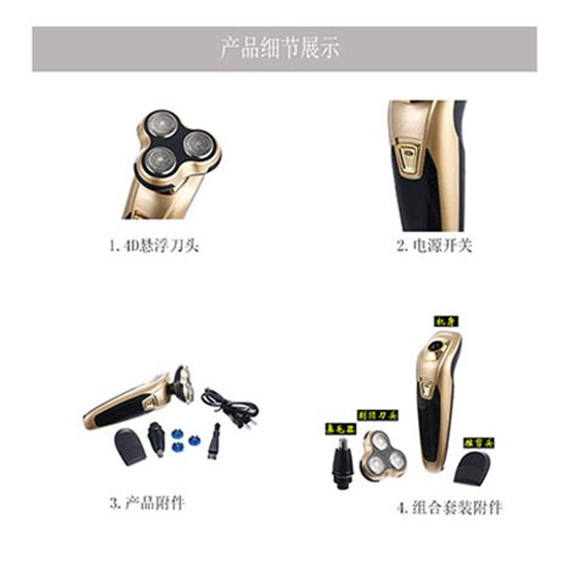 三刀头电动剃须刀充电刮胡刀鼻毛器理发器多功能三合一胡须刀 投诉