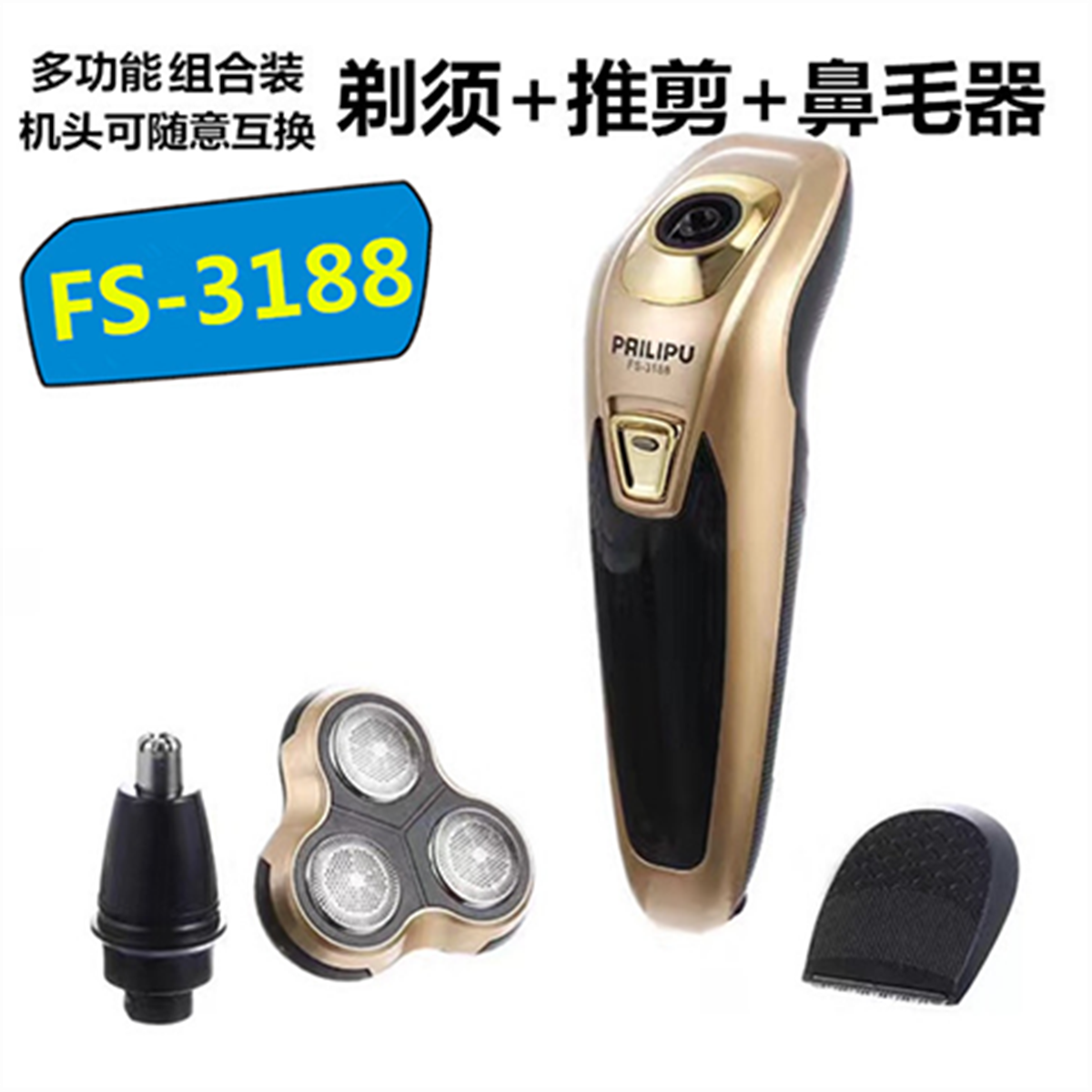 三刀头电动剃须刀充电刮胡刀鼻毛器理发器多功能三合一胡须刀