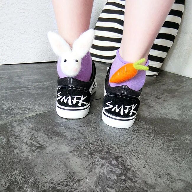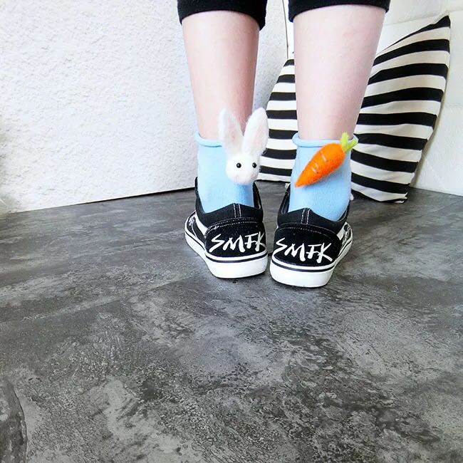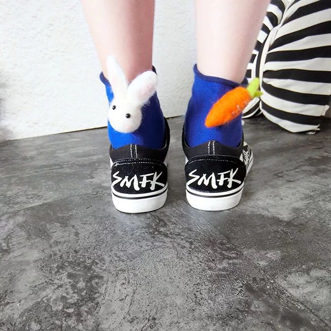 秋硕个性兔子胡萝卜不对称羊毛毡卡通糖果色卷边松口短袜女袜子