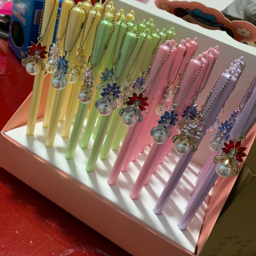 糖果色中性笔水晶带钻吊坠跳舞女孩精致签字笔复古珍珠吊坠 投诉