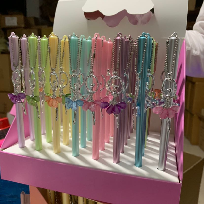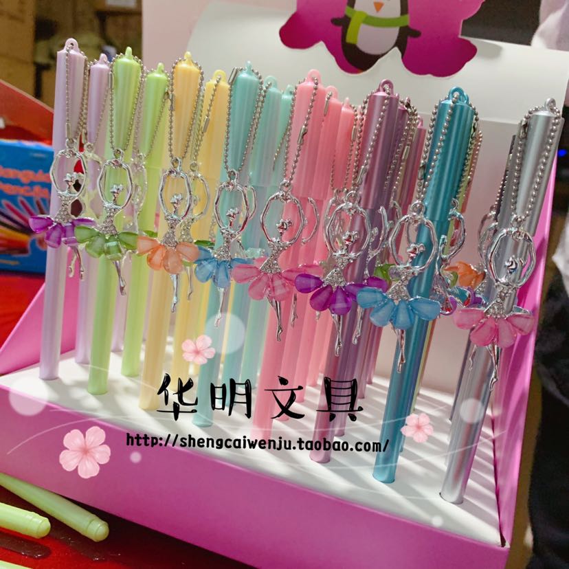 糖果色中性笔水晶带钻吊坠跳舞女孩精致签字笔复古珍珠吊坠