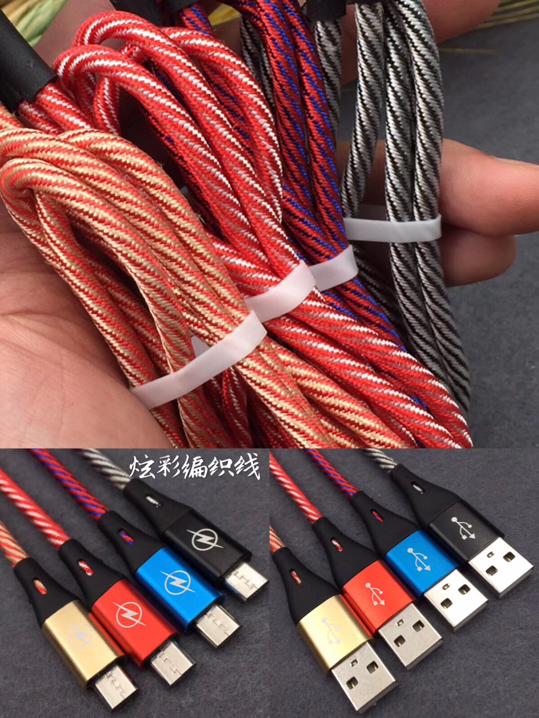 新款布艺编织数据线适用于苹果安卓type-c手机2A快速充电线